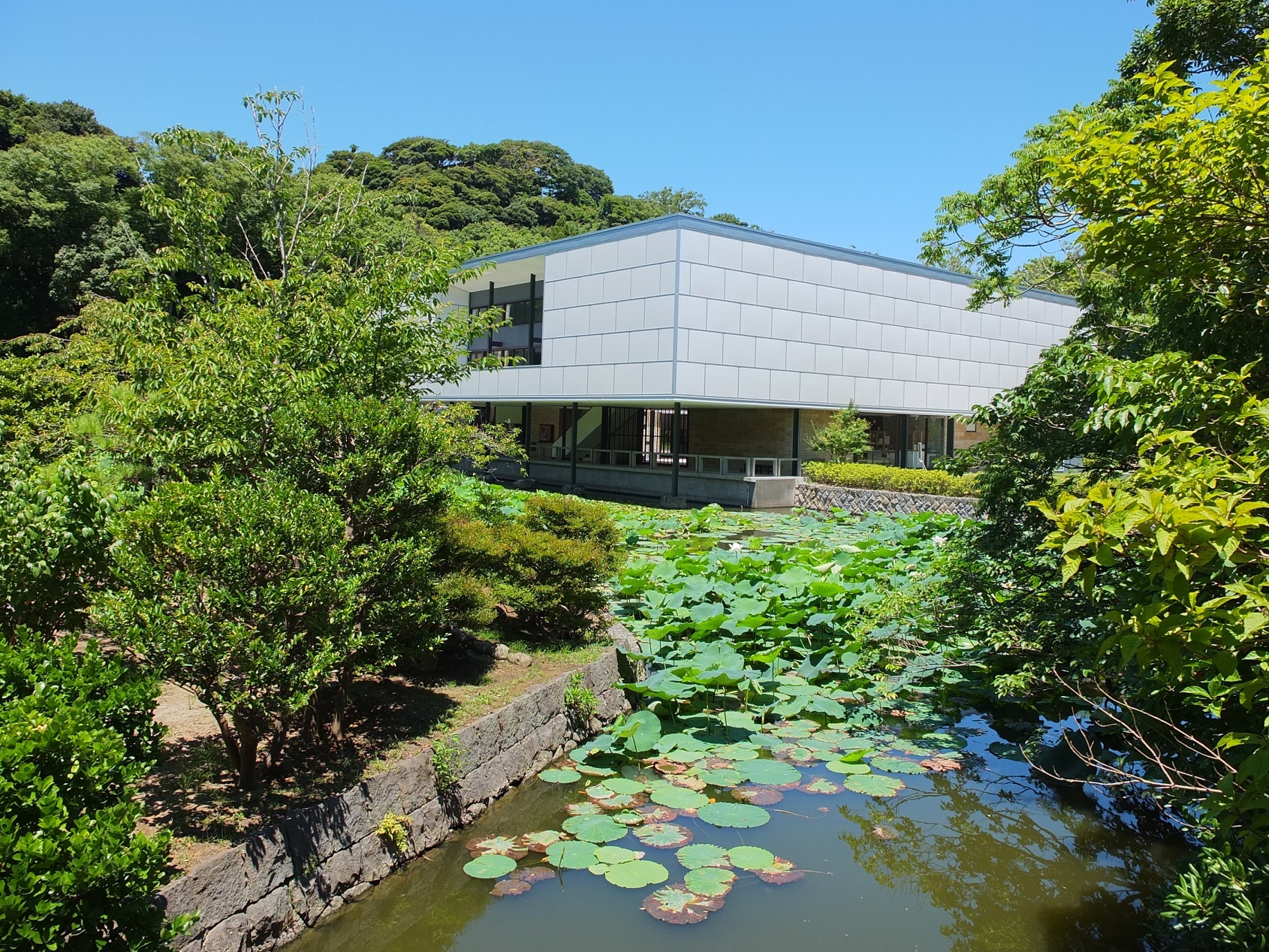 元神奈川県立近代美術館旧鎌倉館として1951年11月に建築家・坂倉準三の設計により建築され、開館したこの建物。借地であったため、2016年1月の契約期間終了に伴い閉館し、取り壊される危機に陥った・・・が、保存運動の末、土地の餅ny氏である鶴岡八幡宮が保存して活用することを決め、2019年6月に 「鎌倉文華館 鶴岡ミュージアム」として開館された。
