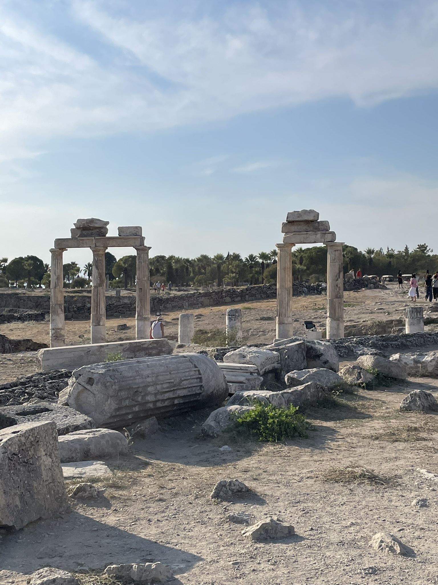 □ヒエラポリス遺跡:パムッカレの石灰華段丘の一番上にある遺跡。ローマ帝国の温泉保養地として栄えた。ローマ帝国時代にも地震で破壊されるが、その後復興。しかし1354年の大地震で完全に廃墟と化す。ローマ劇場、ローマ浴場が残る。出典: 『ウィキペディア(Wikipedia)』