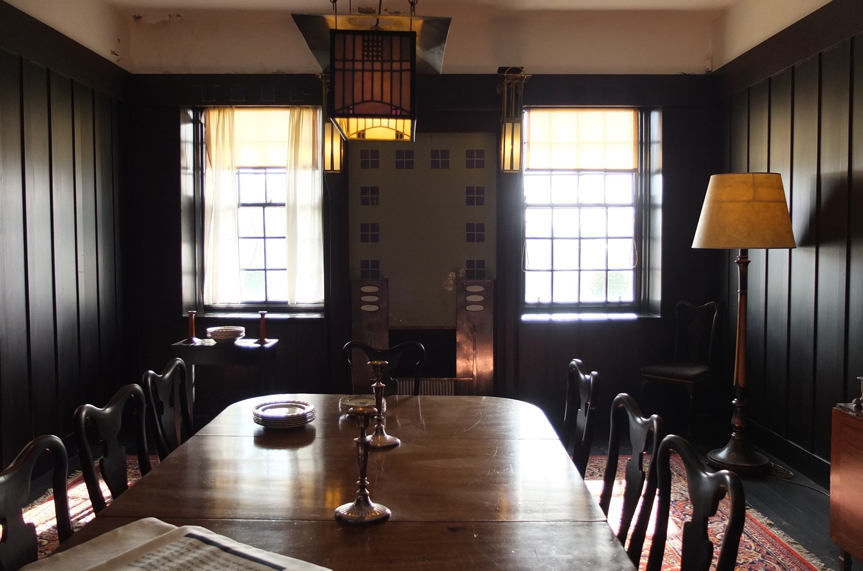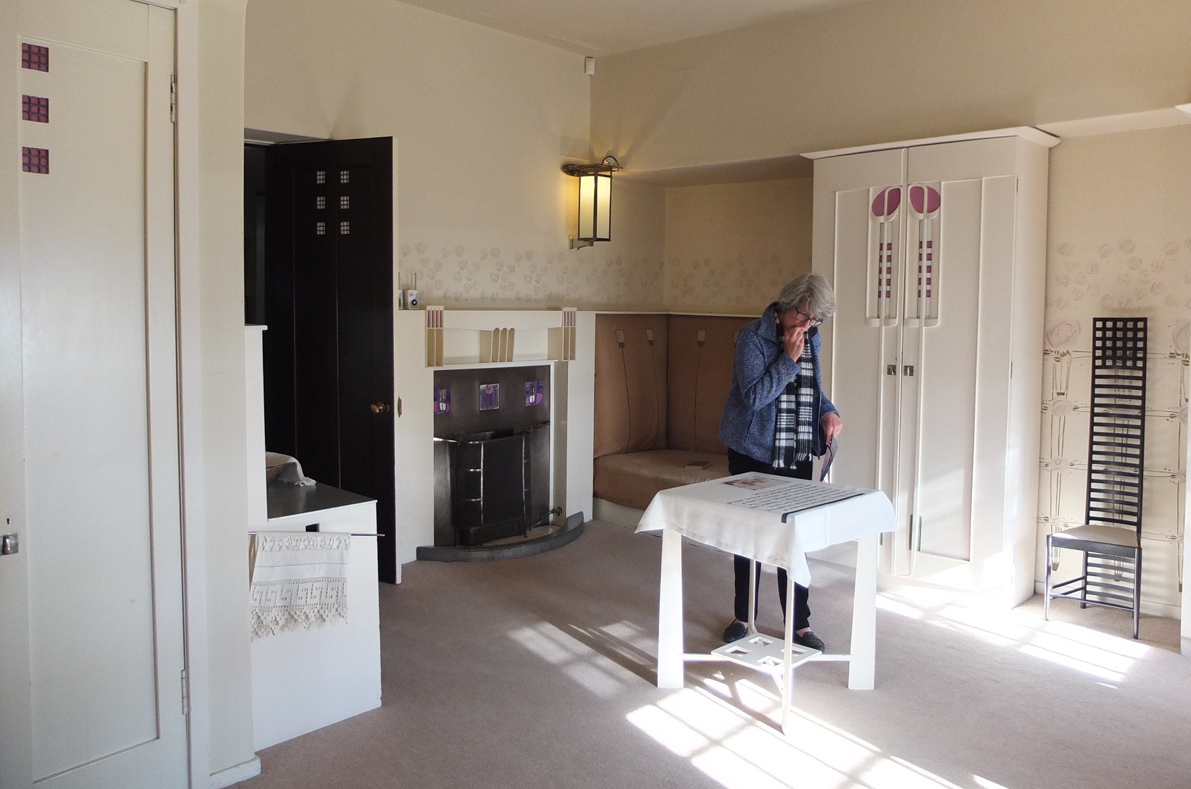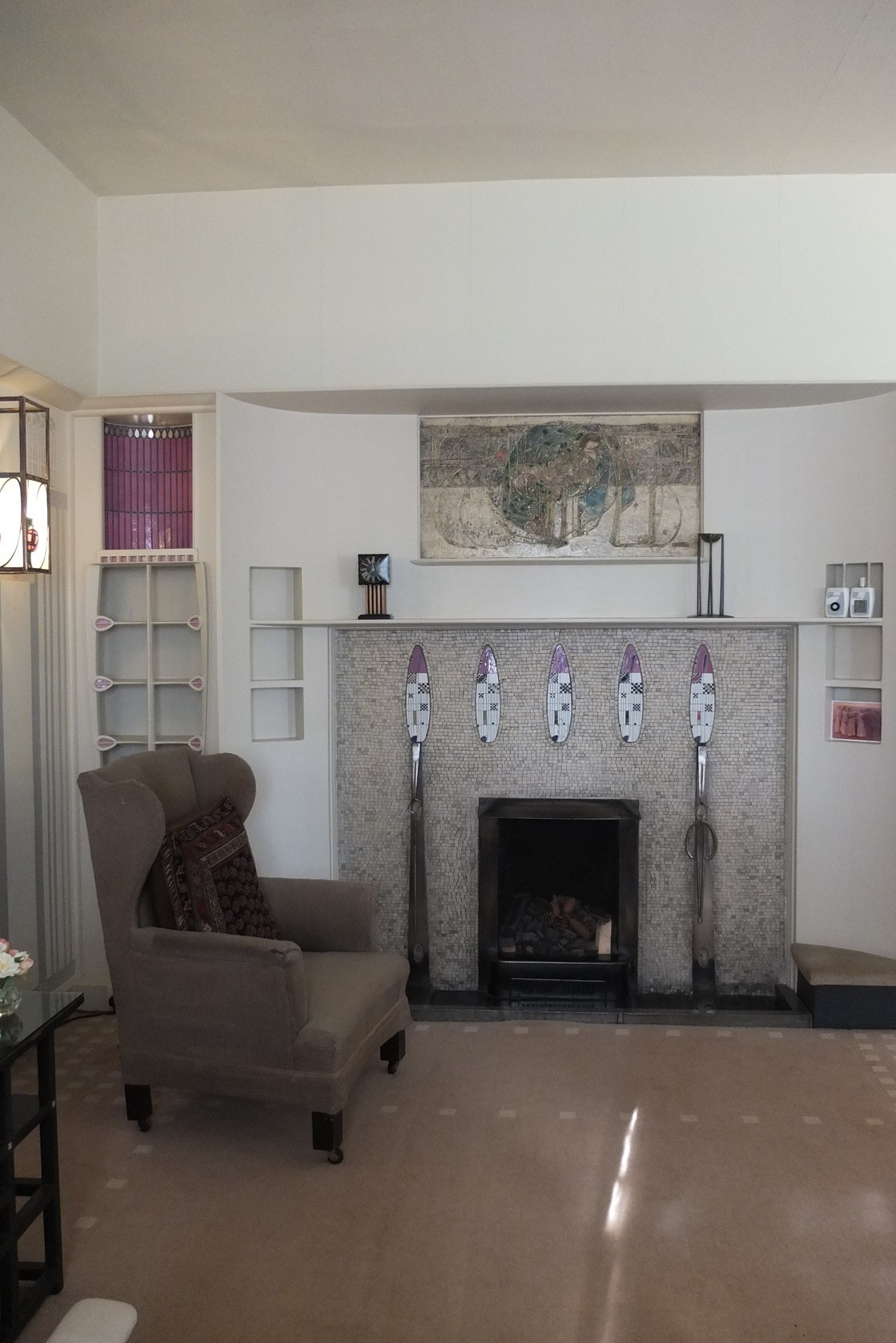 これを書きながら、ふと、持っていたマッキントッシュの写真集を見たら、この部屋の家具・装飾部分から上と天井が黒かった!あれ?おかしい!違う!と思い、ネットで調べてみたけれど、わからなかった。本は2002年に発行されたものなので、その間に現在のような白い天井になったのだろうか?どちらがオリジナルなんだろうか・・・因みに、本に載っていた平面図も若干違う。