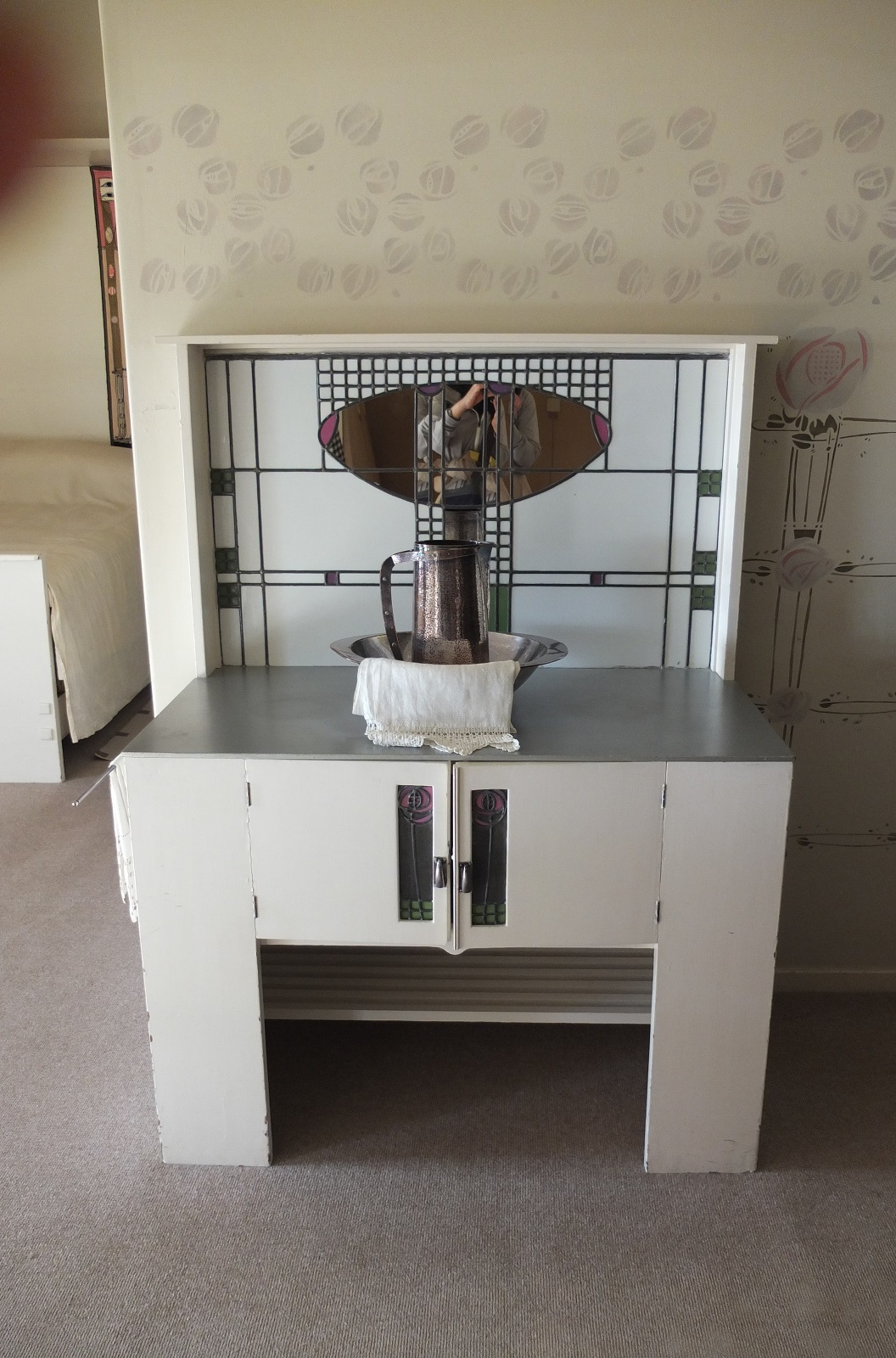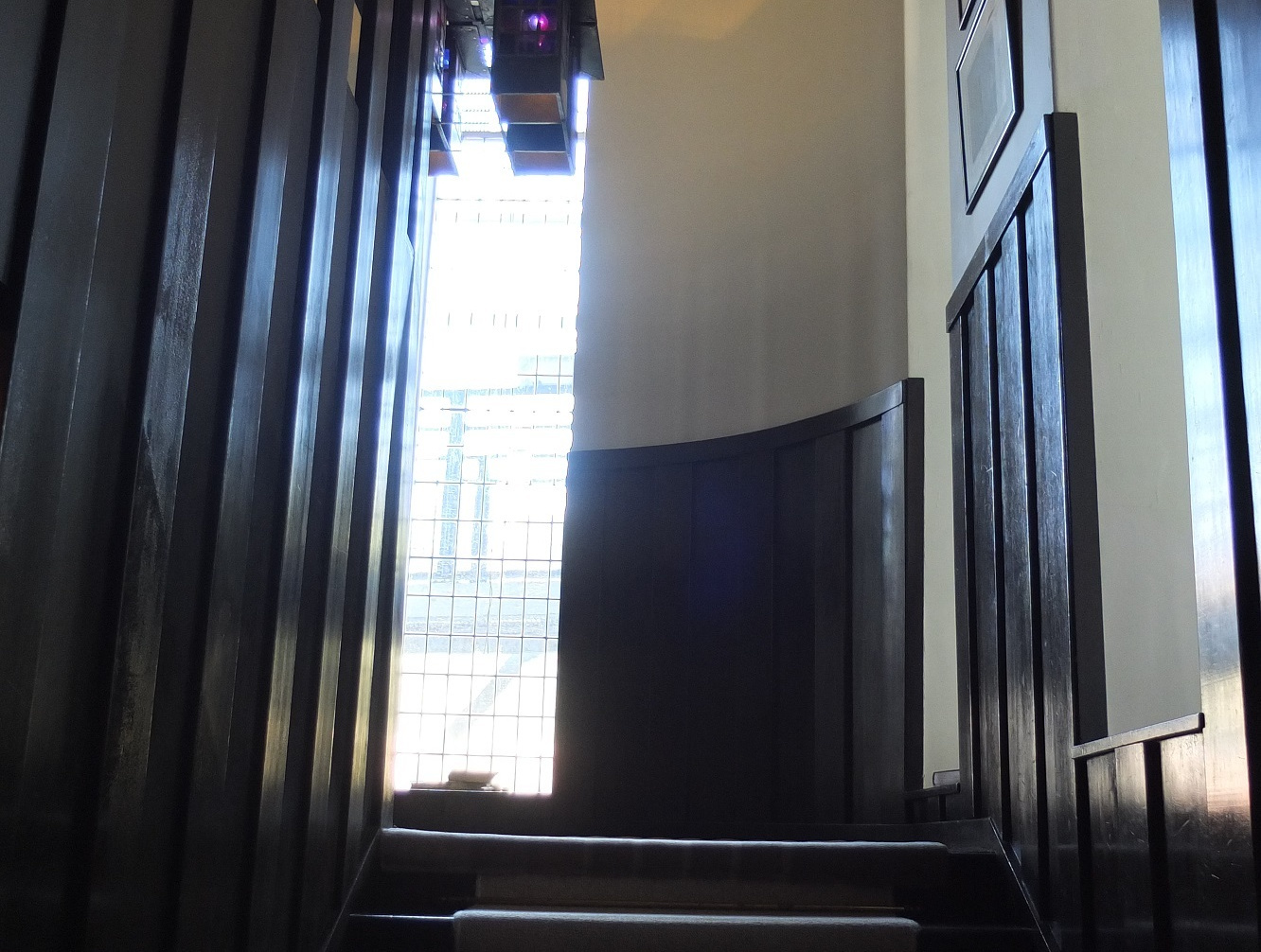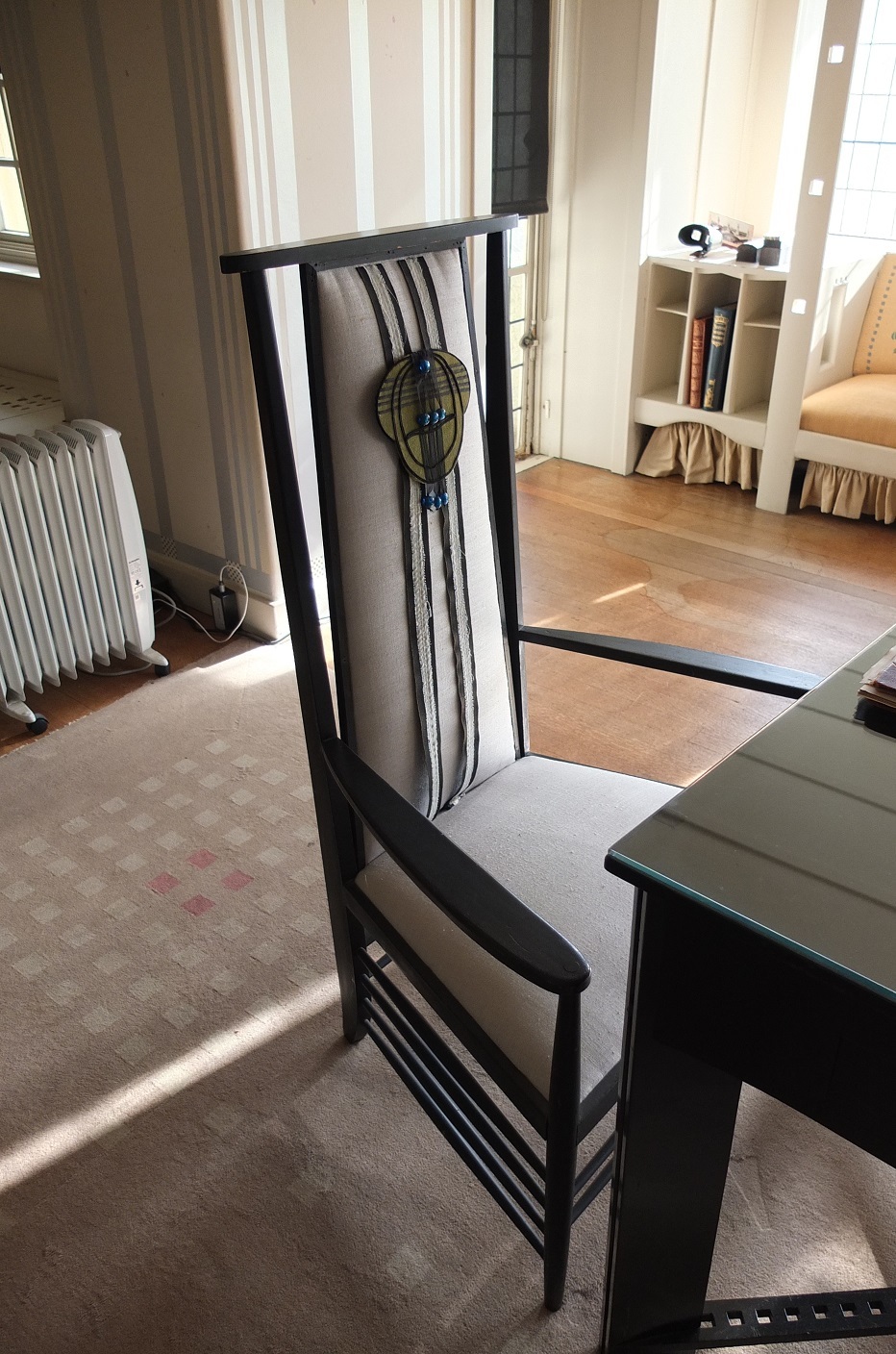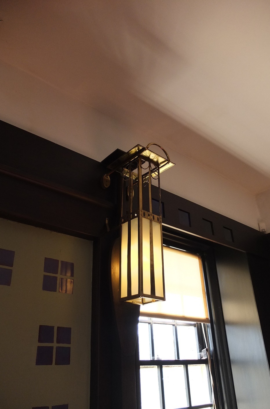 これを書きながら、ふと、持っていたマッキントッシュの写真集を見たら、この部屋の家具・装飾部分から上と天井が黒かった!あれ?おかしい!違う!と思い、ネットで調べてみたけれど、わからなかった。本は2002年に発行されたものなので、その間に現在のような白い天井になったのだろうか?どちらがオリジナルなんだろうか・・・因みに、本に載っていた平面図も若干違う。