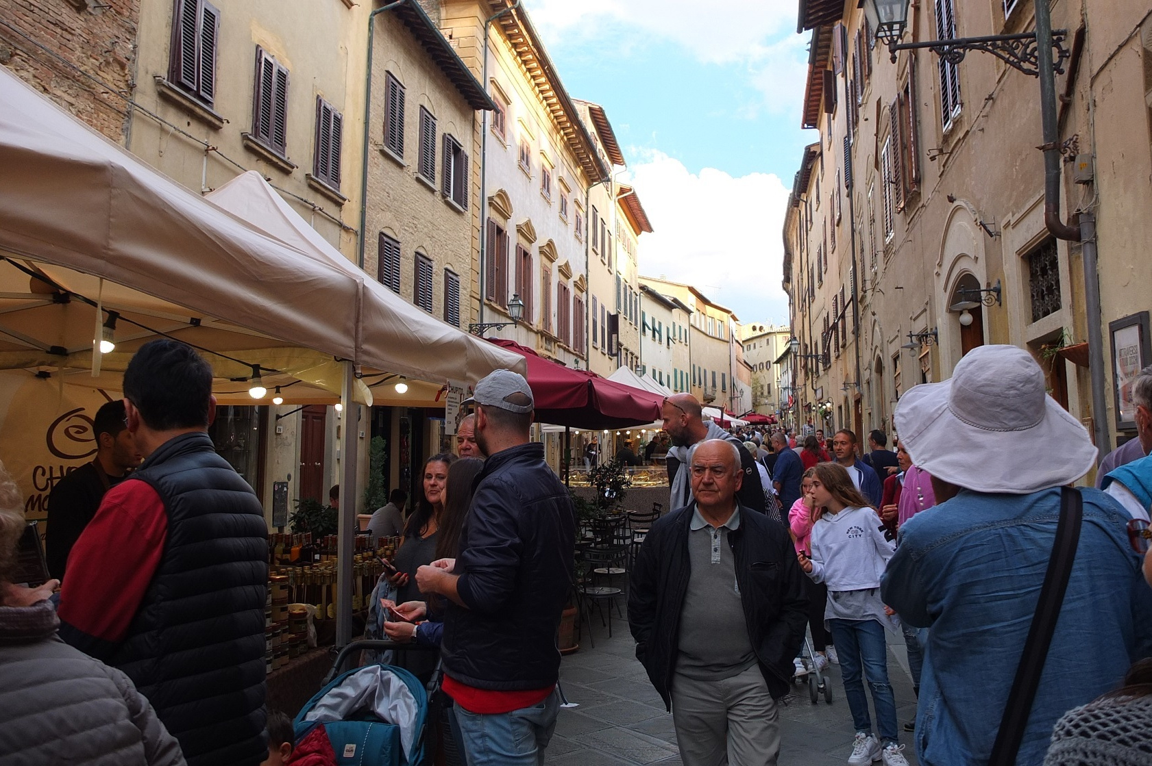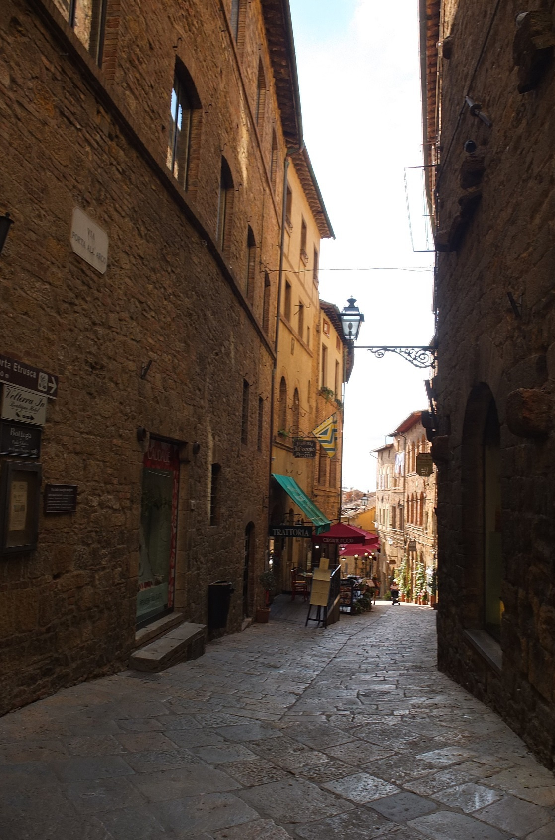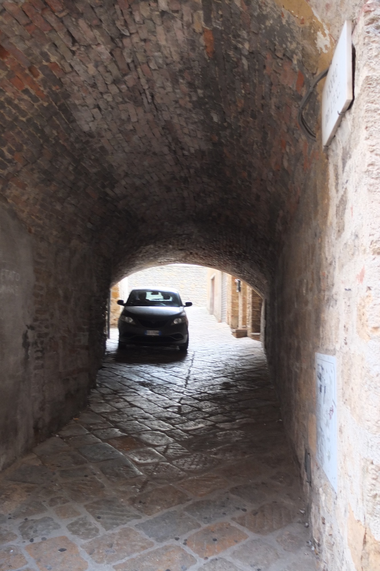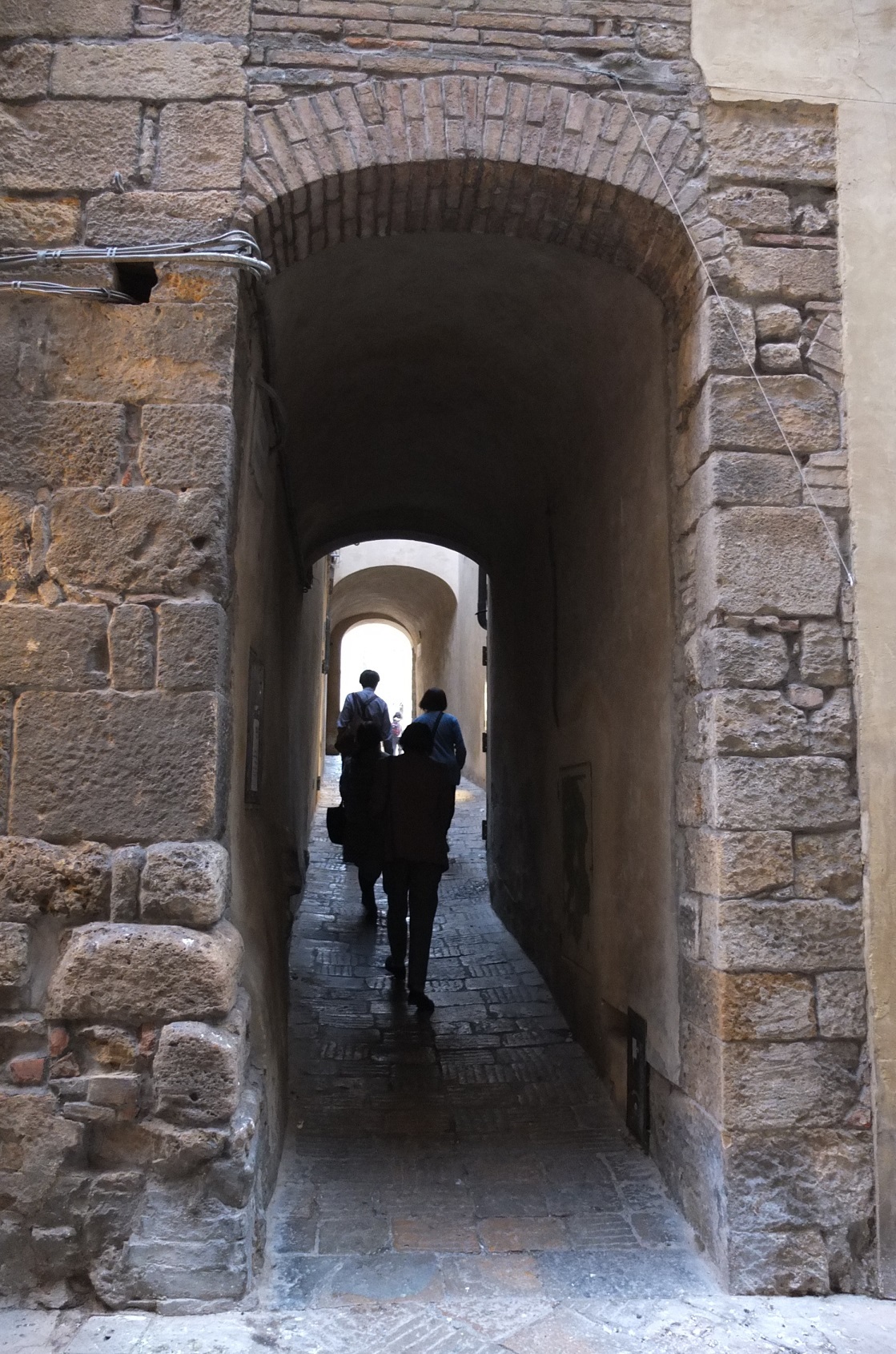 イタリアの古い街特有の路地を通り、中心部へ。この細い路地を抜けると・・