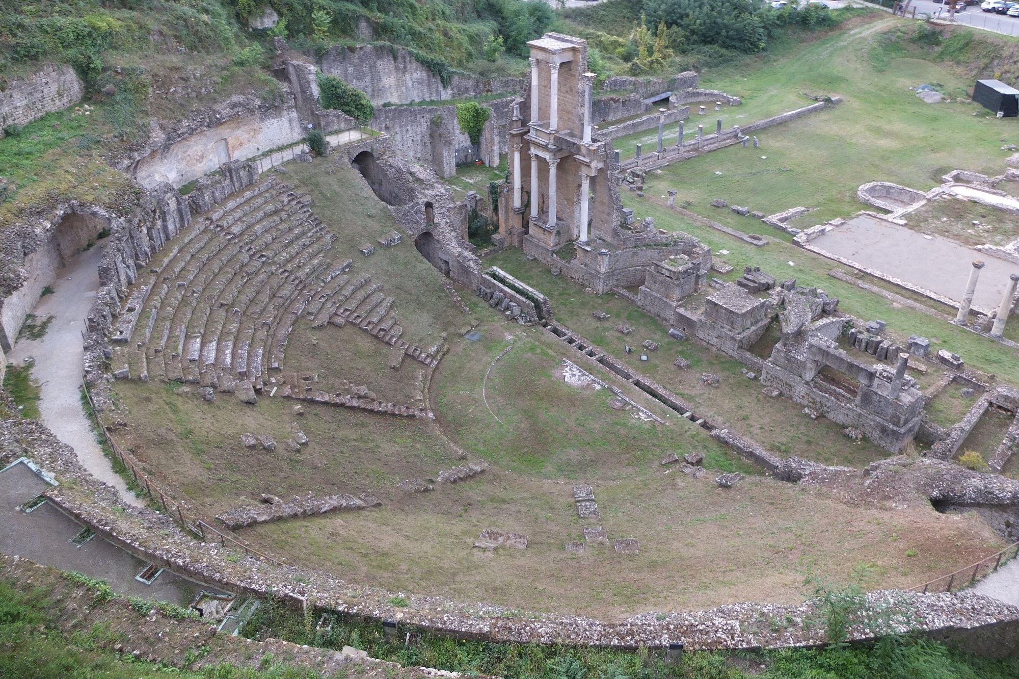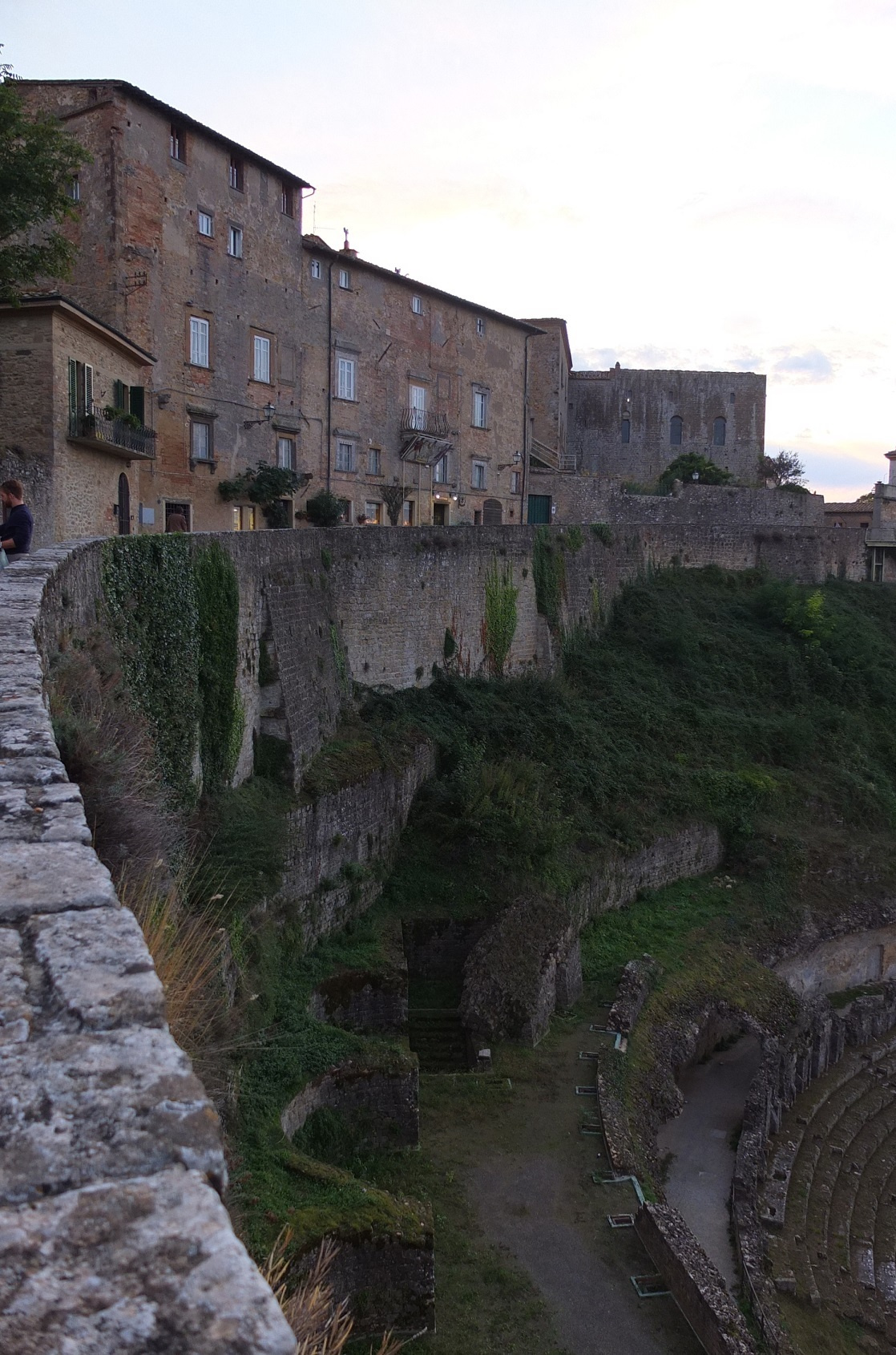 街は城壁で囲まれ、城壁の外には円形劇場テアトロロマーノがある。外周の道から見える。ここも見学ができるそうだが、やはり時間が無く上から眺めて来た。