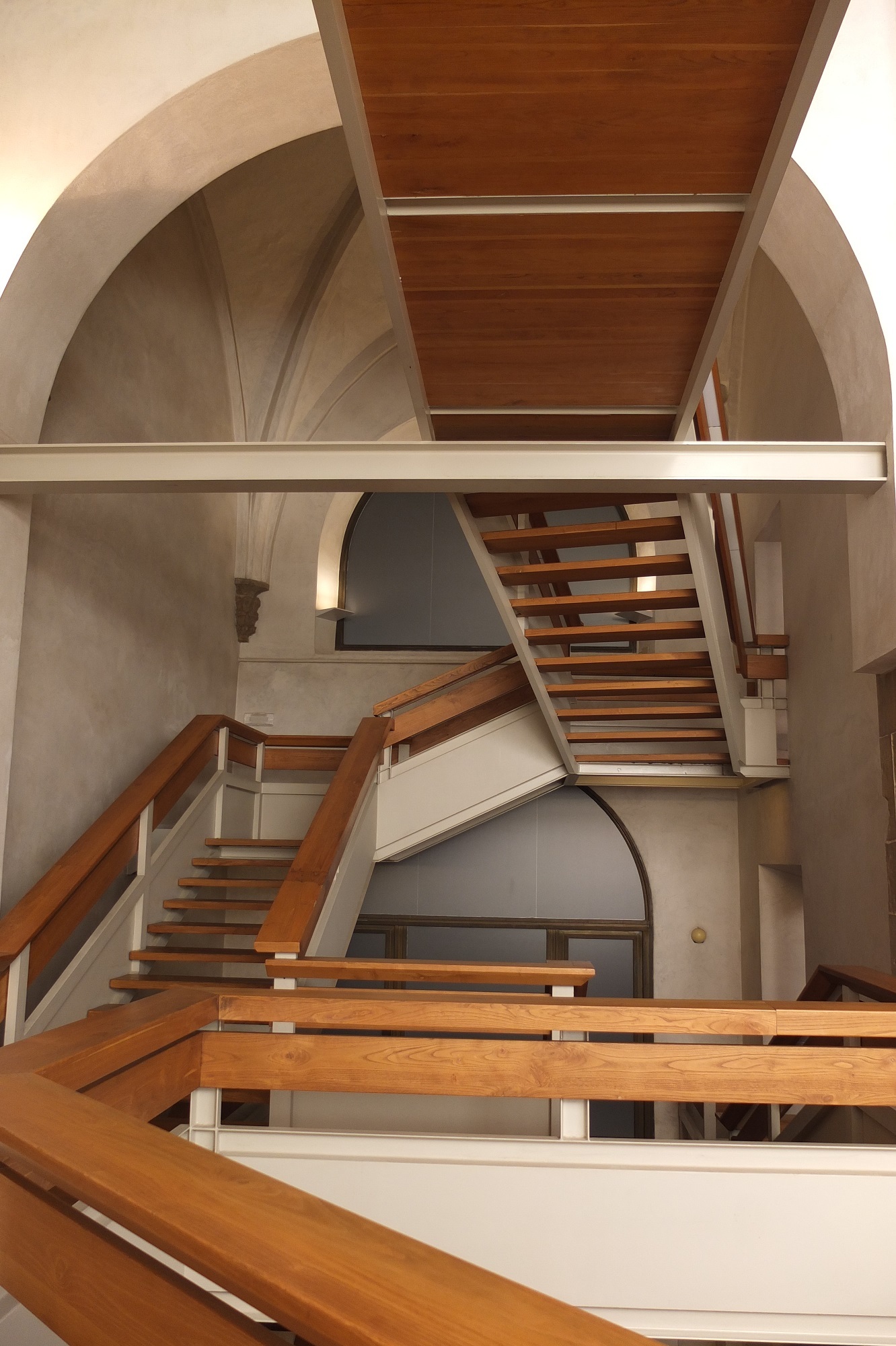 天井に残る教会の名残。重なるアーチが教会を思わせる。