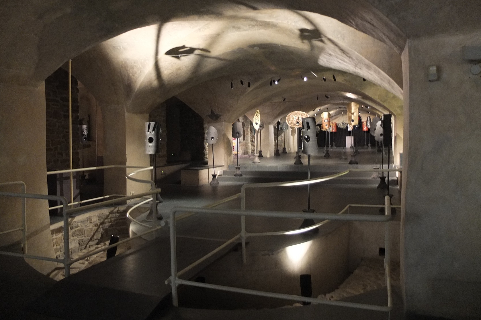 地階は企画展の展示空間となっている。地階へ行く階段が、なんともステキな空間になっている。上とはかなり違う雰囲気だ。もとは何に使われていた空間だろうか。
