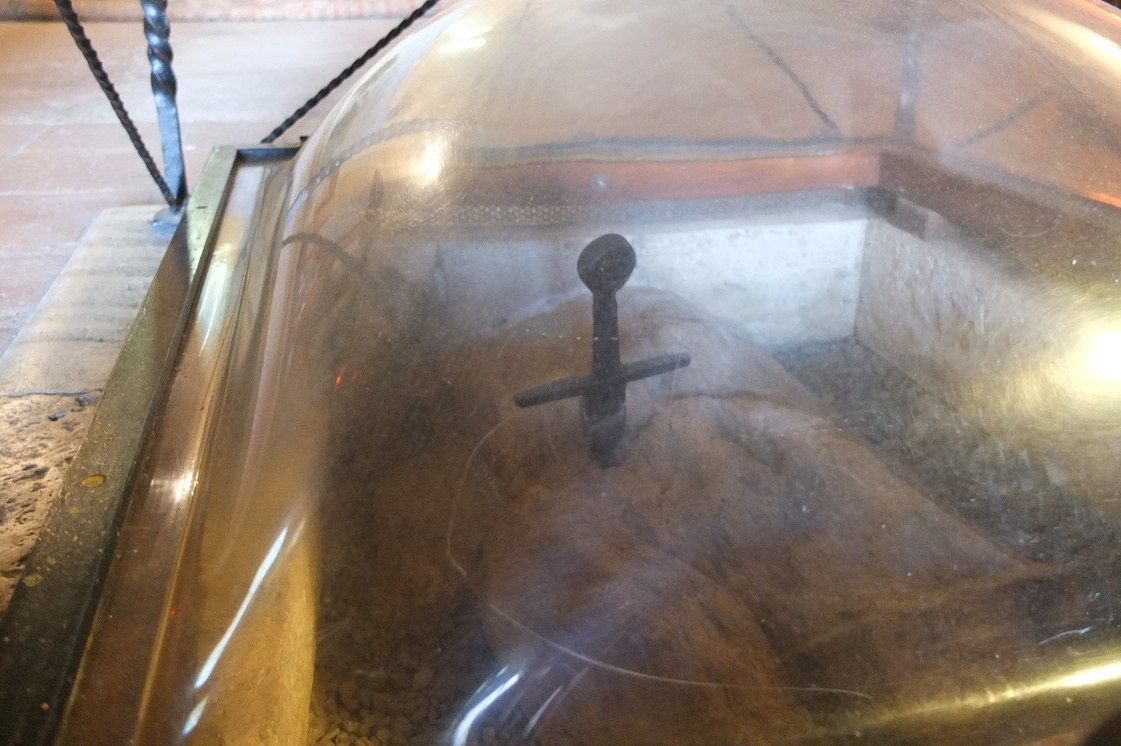 後に聖ガルガーノとなる騎士ガルガーノ・グイドッティは、世俗の世界を捨て、修道士になる事を決意し、1180年12月25日、刀を十字架に見立てて岩に差した、と言われている剣が保存されいる。