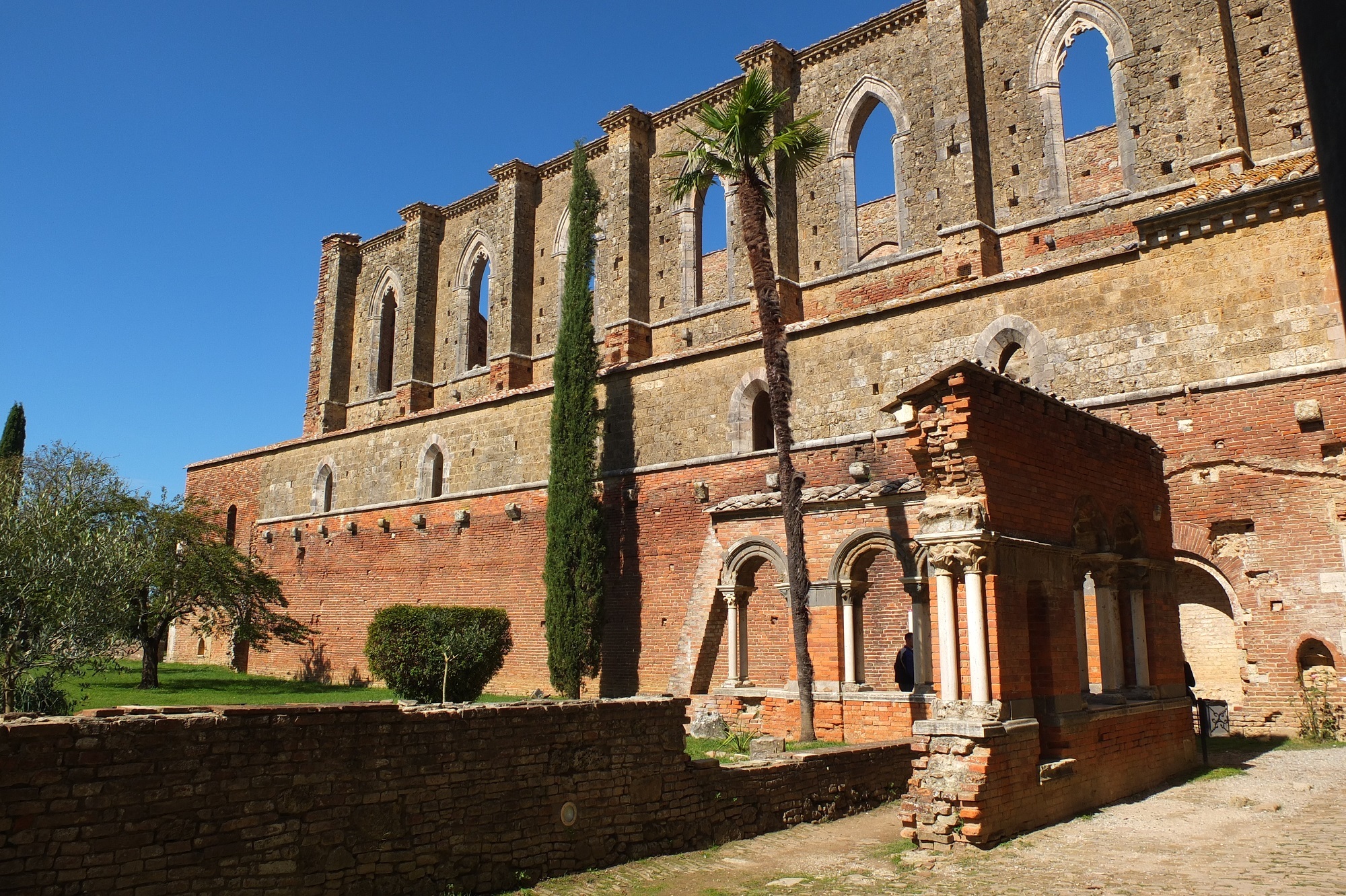 シエナとサンジミニャーノの間にある町に残る教会の建物。1288年に建立されたシトー派の修道院だったそうだが、ペストの流行や略奪で修道僧が減り、1400年代後半に廃墟となったそうだ。