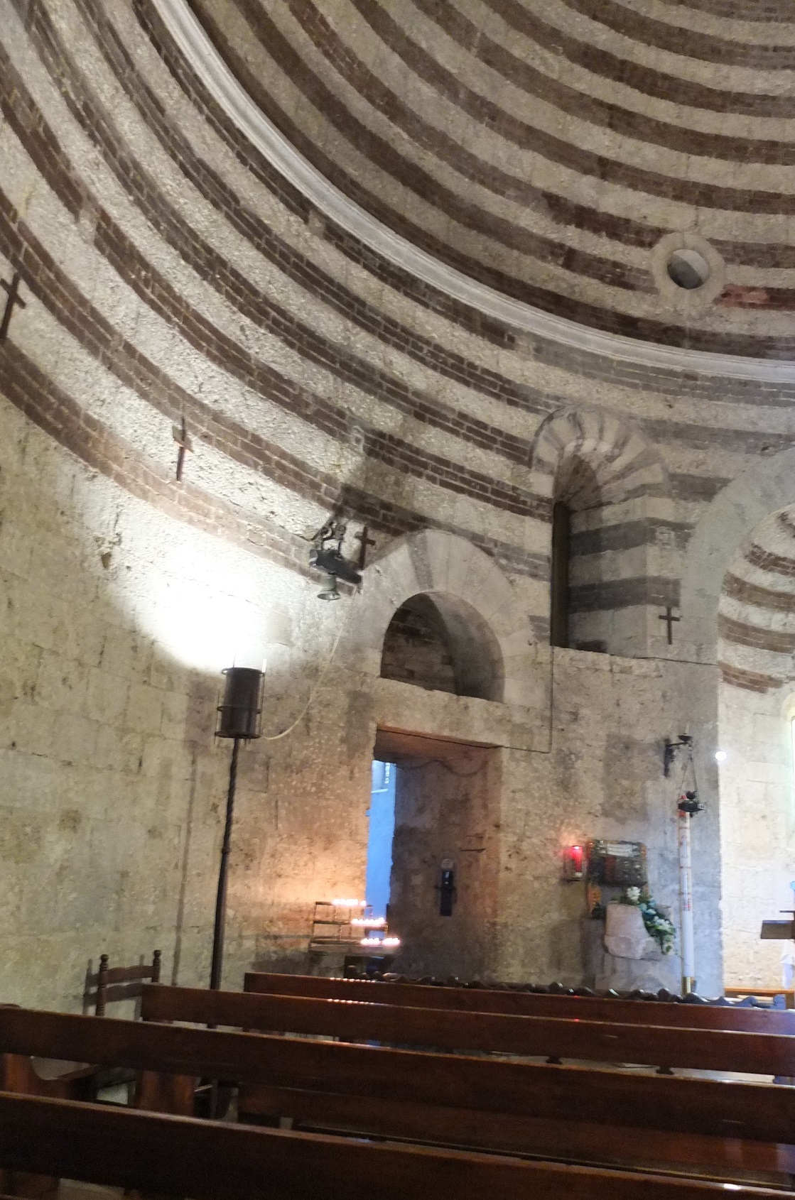 とても小さな礼拝堂で、中はこんな渦巻の壁。こちらは今も使われている感じだ。