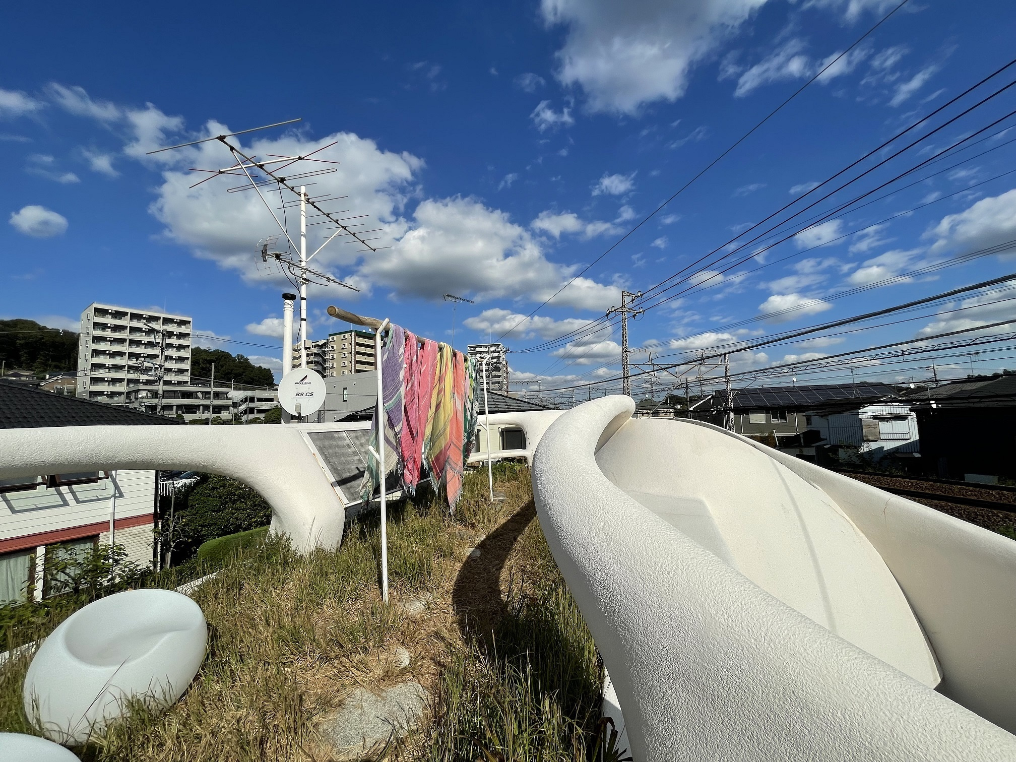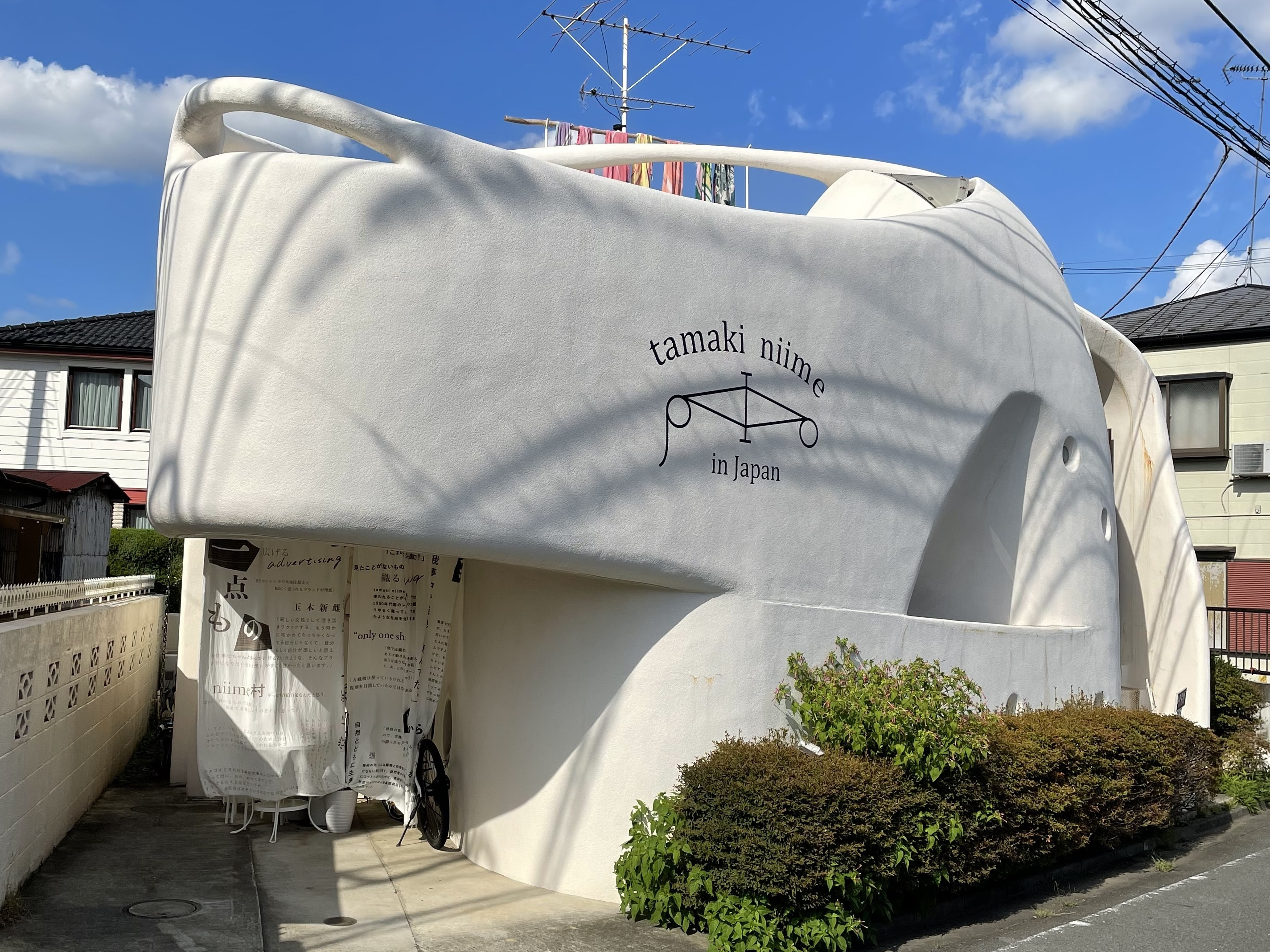 小田急線鶴川駅を降りて線路沿いに歩いていくと、突然現れる軟体動物のような建物。