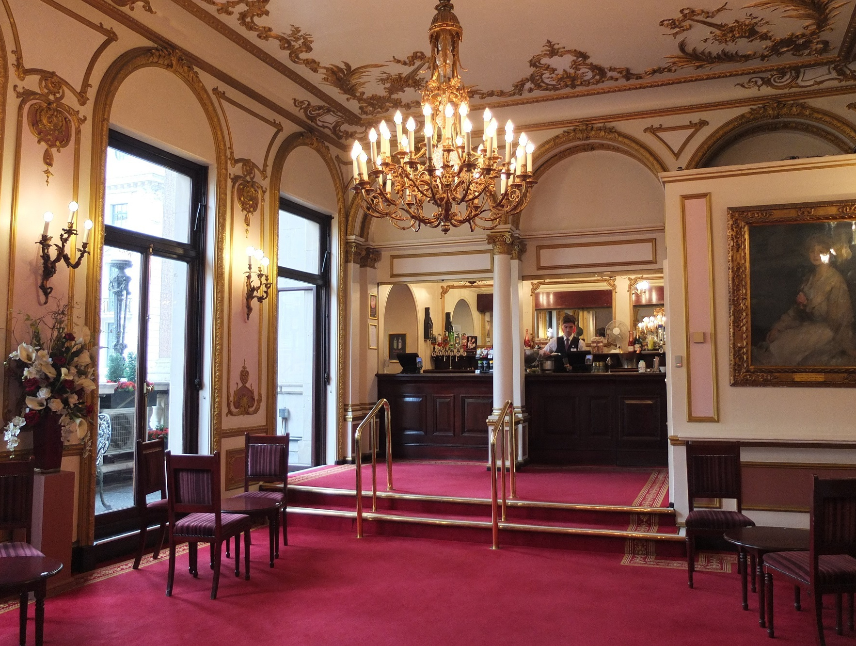 劇場内へはすぐには入れず、ここでしばらく待たされる。バーコーナーが有り、皆さん、コーヒーやワインなどを飲みながら待っている。