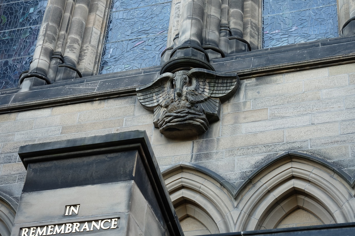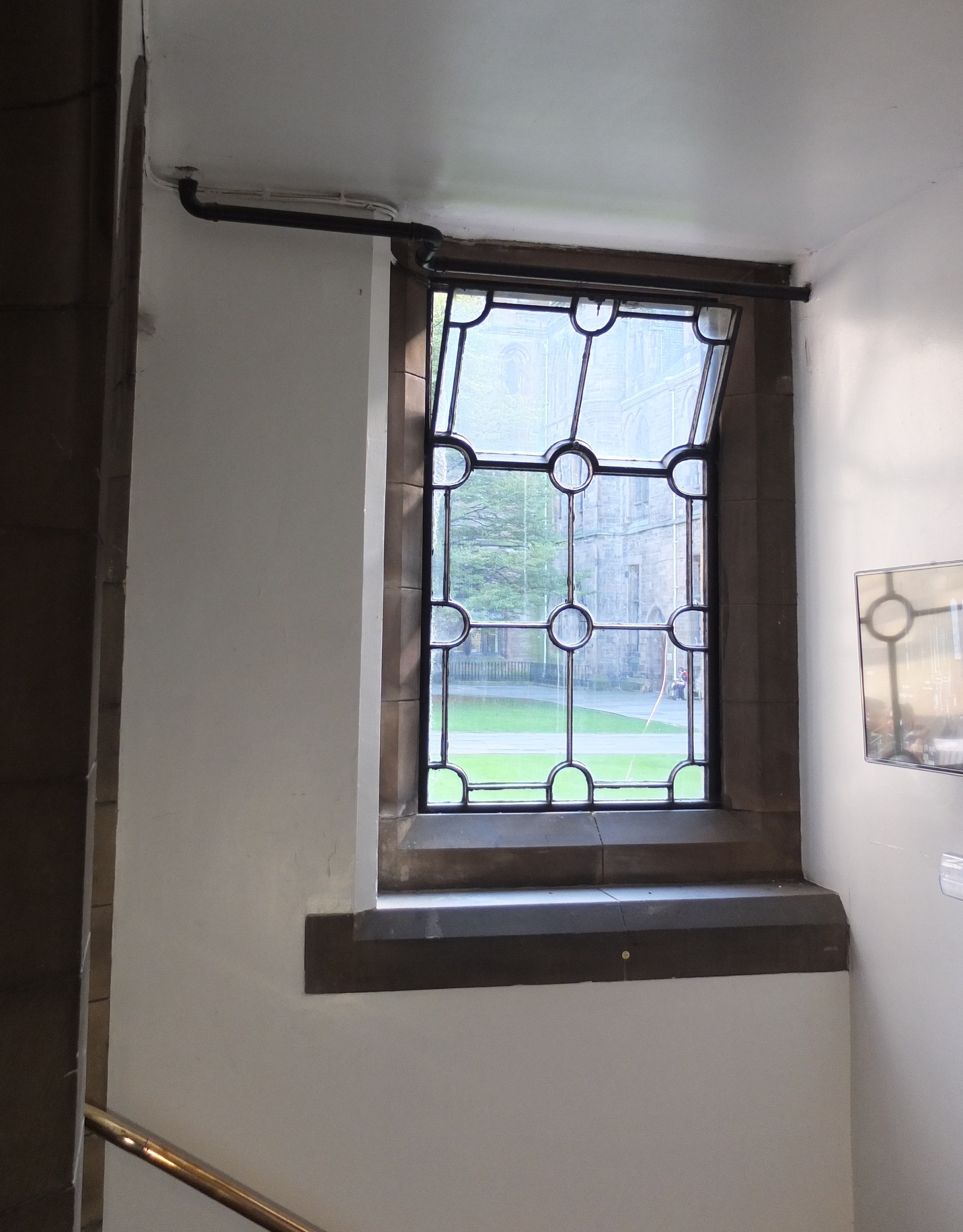 昨日見た正門と反対側から入る。建物はかなりの年代物。創立が1451年という、500年以上の歴史を有する英語圏最古の大学の一つだそうだ。高い塔があるゴシック様式この大学本館は、建築家ジョージ・ギルバート・スコットの設計により1870年の移転の時に建設されたそうだ。ん?そんなに古くない?