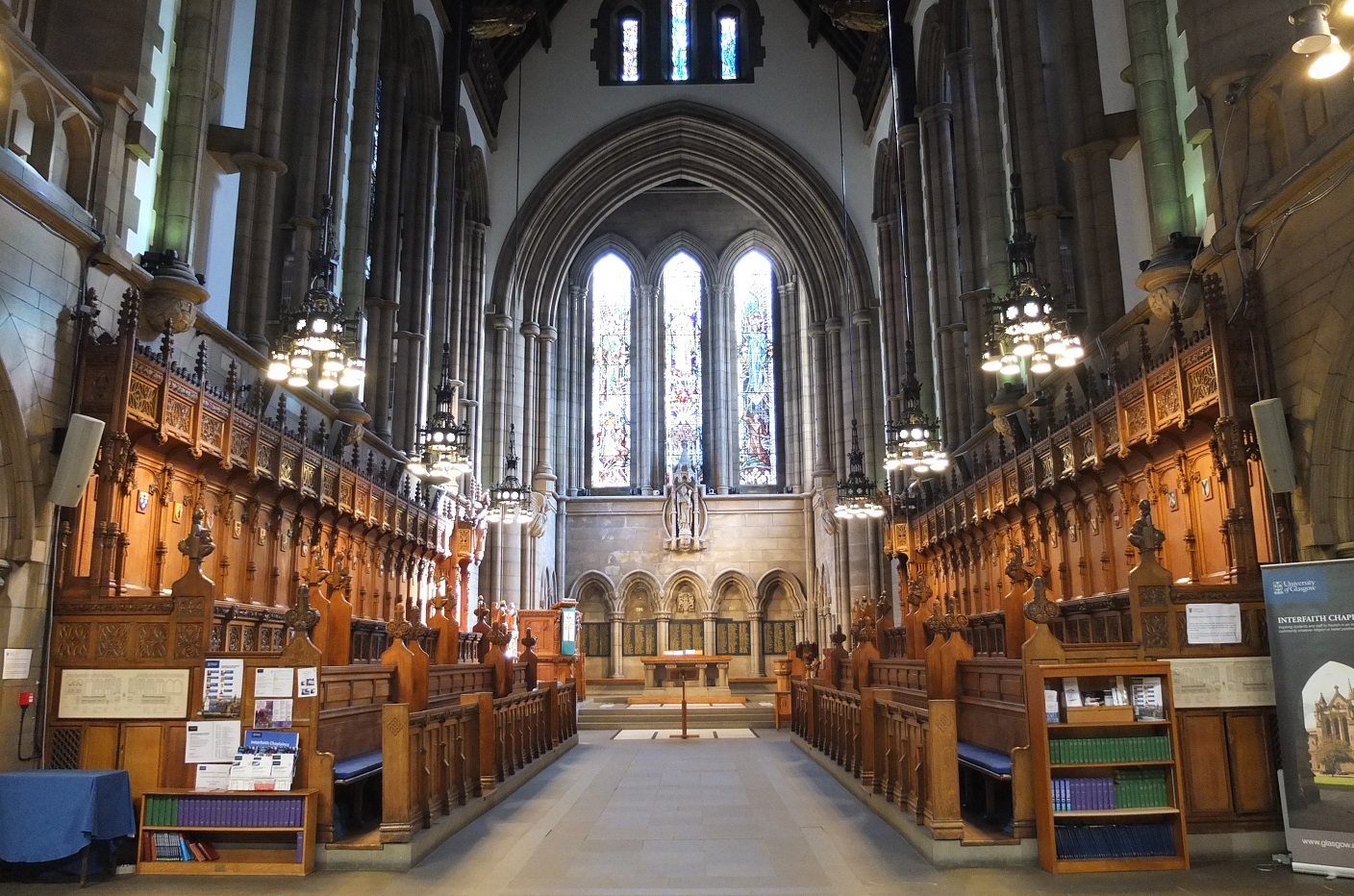 「大学構内に教会が有るなんて、やっぱりイギリス人はまじめだ!」なんて、根拠もないことを思いつつ、見学。それほど大きくはないし、豪華でもないが、なんとなく気が引き締まり、引き付けられるものが有った。