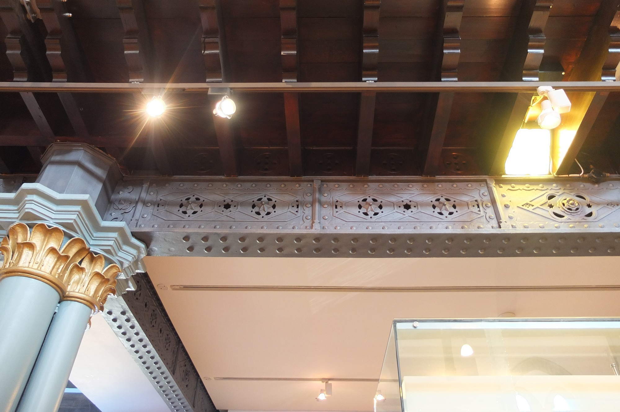 よく見ると、梁は鉄骨だ。柱もおそらく鉄骨で、装飾で覆っているんだろうな。梁も鉄骨とは思えないような装飾が!
