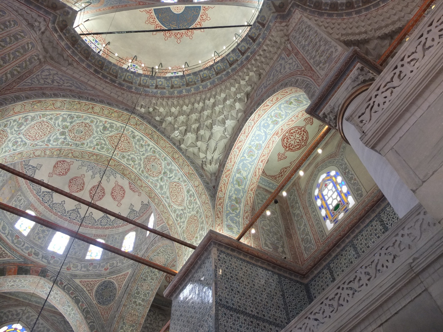 さて、気付かれただろうか、思ったより青く無い。青いイズニックタイルが2万枚以上使われているというが、全体的にはそれ以外の色のタイルや装飾が多いせいか、規模自体も大きいので、ブルーの割合は3~4割にも満たない感じ・・・2階の壁部分はほぼブルーのタイルだけど・・・