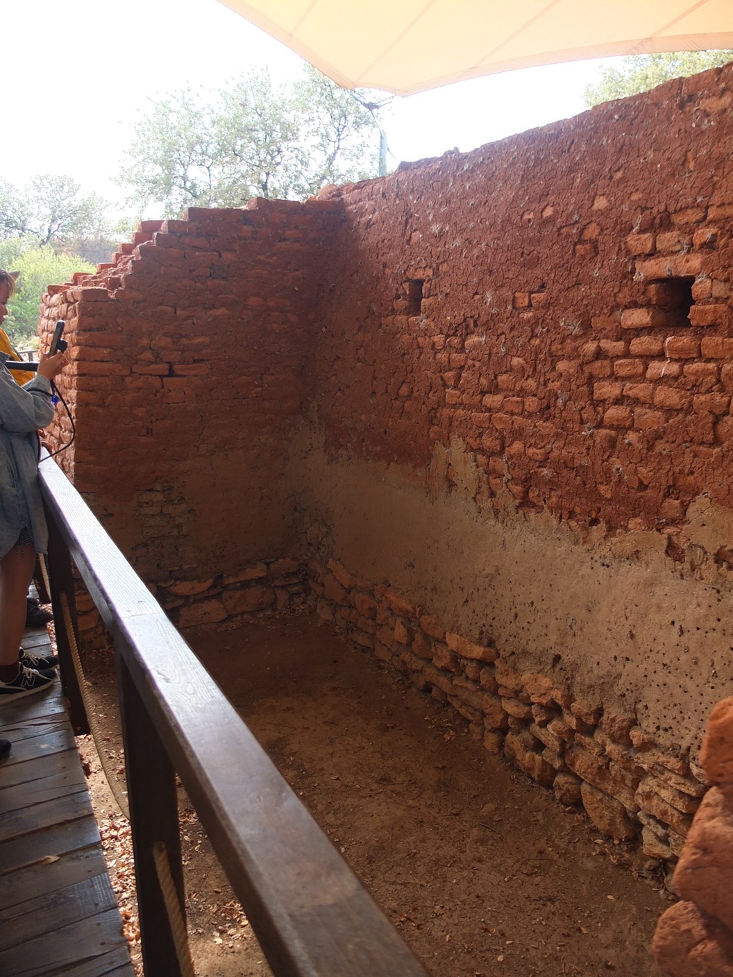 進んでいくと、煉瓦っぽい組積造の壁があった。手前の白っぽいものが遺跡で、その横の煉瓦っぽい色のものは復元らしい。