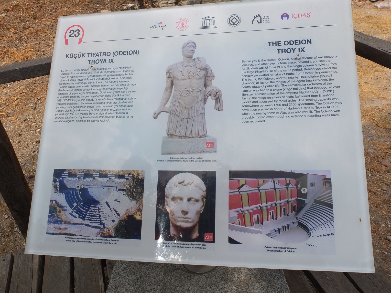 □トロイの遺跡は、トルコ西北部・チャナッカレ県の、ダーダネルス海峡から南へ約5kmほどのところに、エーゲ海の平原を見下ろすようになっているヒサルルクの丘にある。