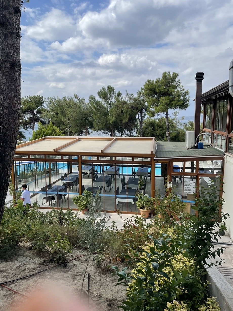 トロイまでの長い移動の間のランチは、元国営ホテルのレストランで。