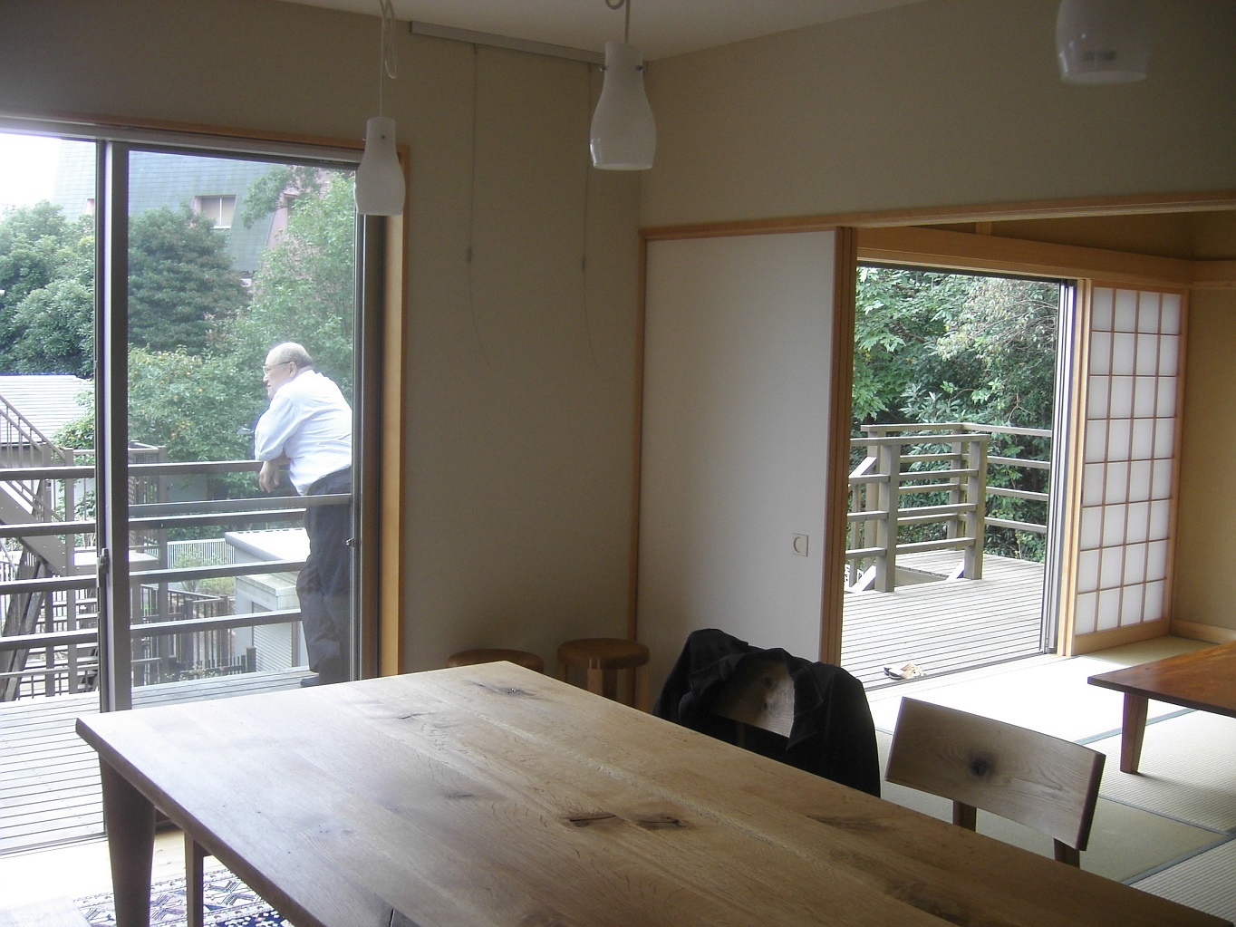 M氏は、竣工後に見学に来た人たちに「空間だけ作ってくれと頼んだんだ」と言っていたが、まさにそのとおりだった。M氏の要望はほとんど無いにひとしく、唯一是非作って欲しいと頼まれたのは大きな書庫、それ以外は寝転がれる書斎、大きい風呂ぐらいだった。後はそこでどんな暮らしをしたいのか、どんな風にすごしたいかを聞かせてくれた。設計への希望はそれに合った「空間」ということだ。