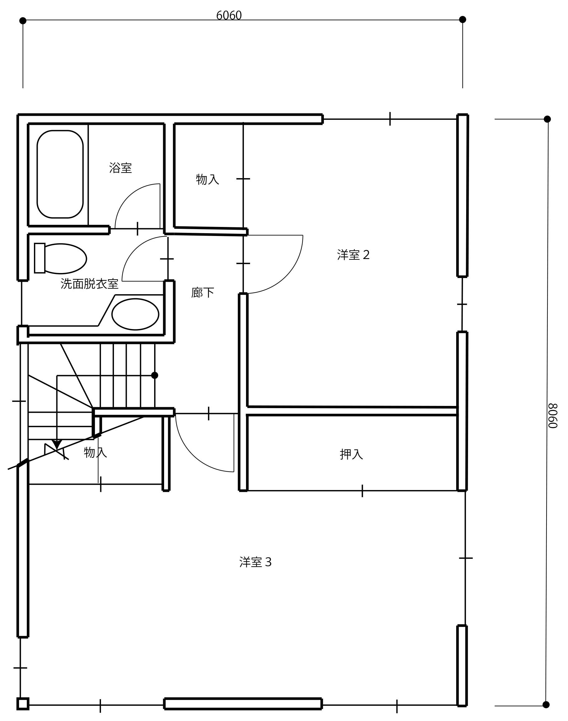 南側の個室は将来2部屋に区切ることを想定していたような横長の部屋
