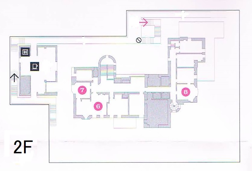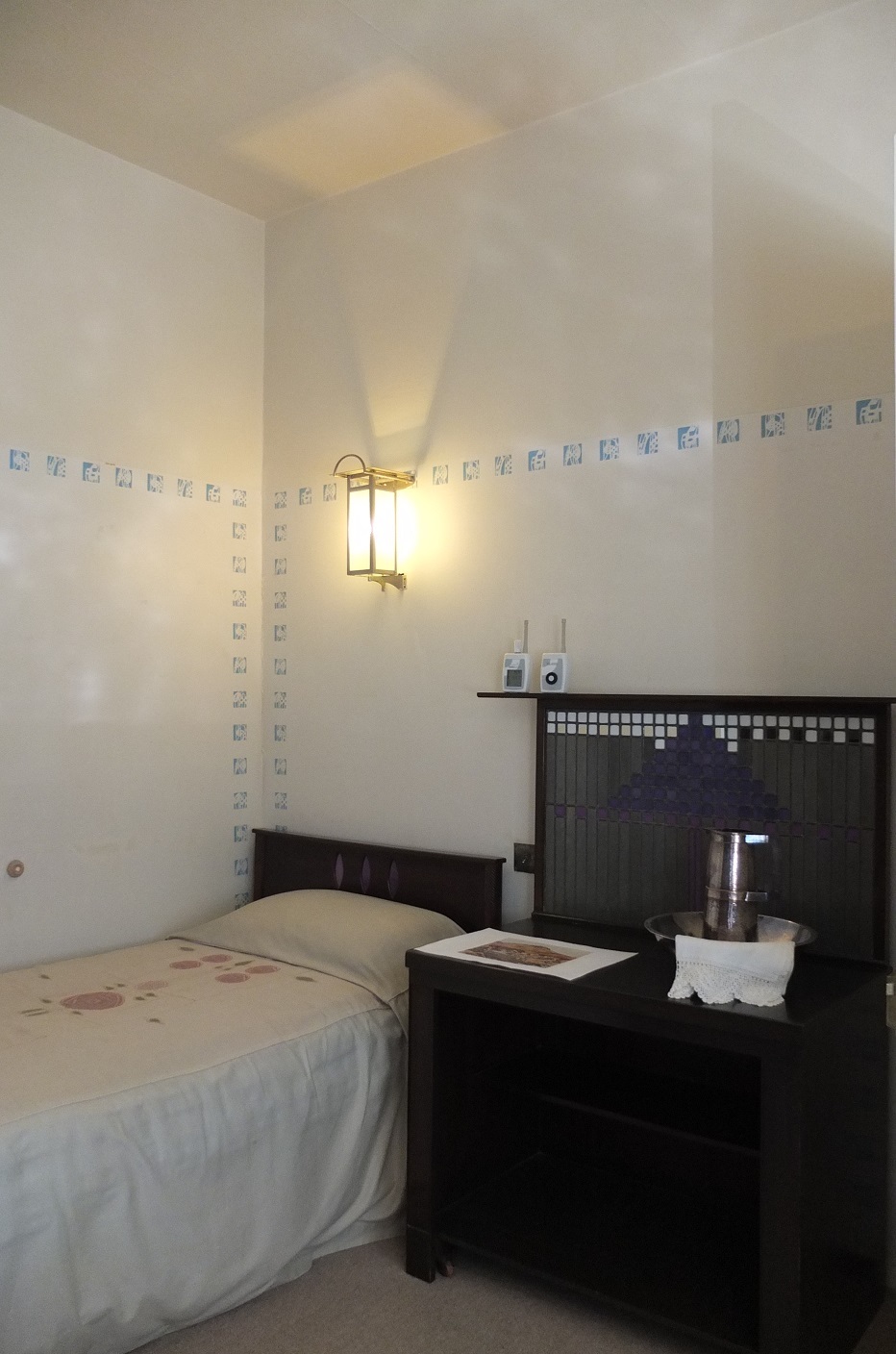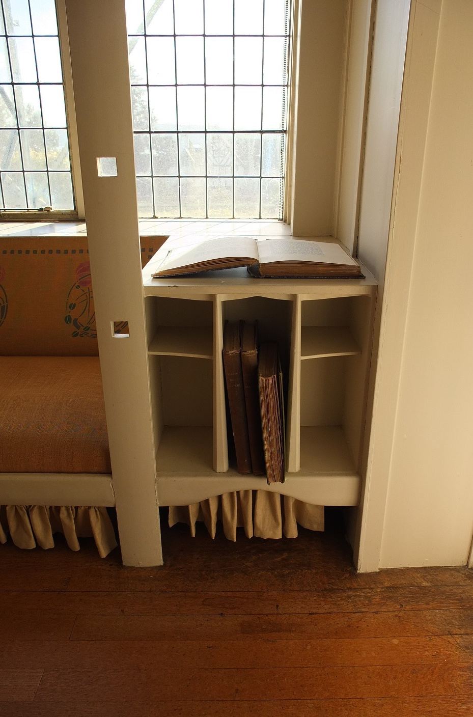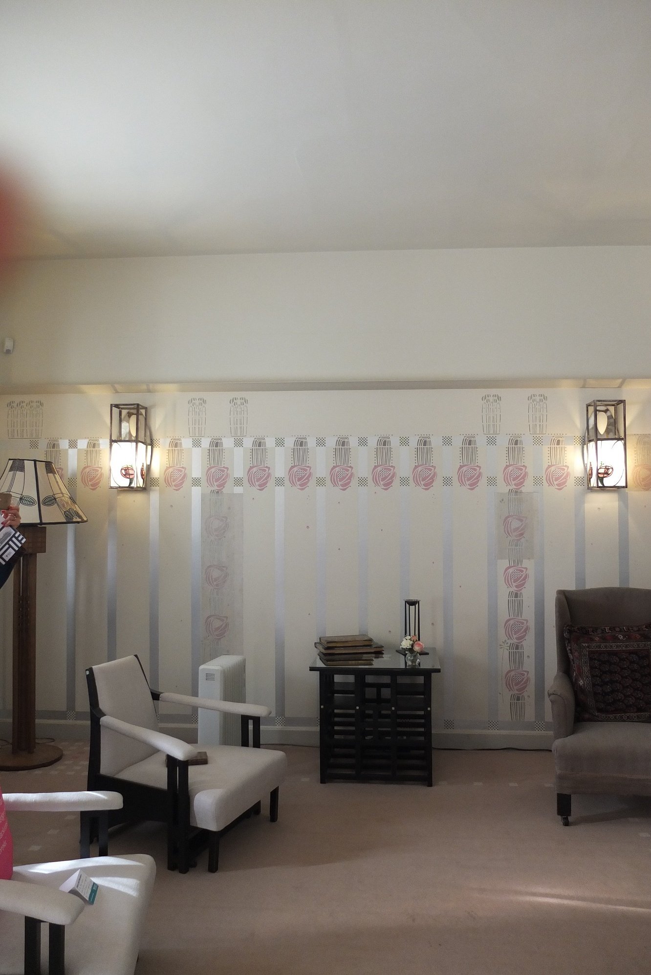 これを書きながら、ふと、持っていたマッキントッシュの写真集を見たら、この部屋の家具・装飾部分から上と天井が黒かった!あれ?おかしい!違う!と思い、ネットで調べてみたけれど、わからなかった。本は2002年に発行されたものなので、その間に現在のような白い天井になったのだろうか?どちらがオリジナルなんだろうか・・・因みに、本に載っていた平面図も若干違う。