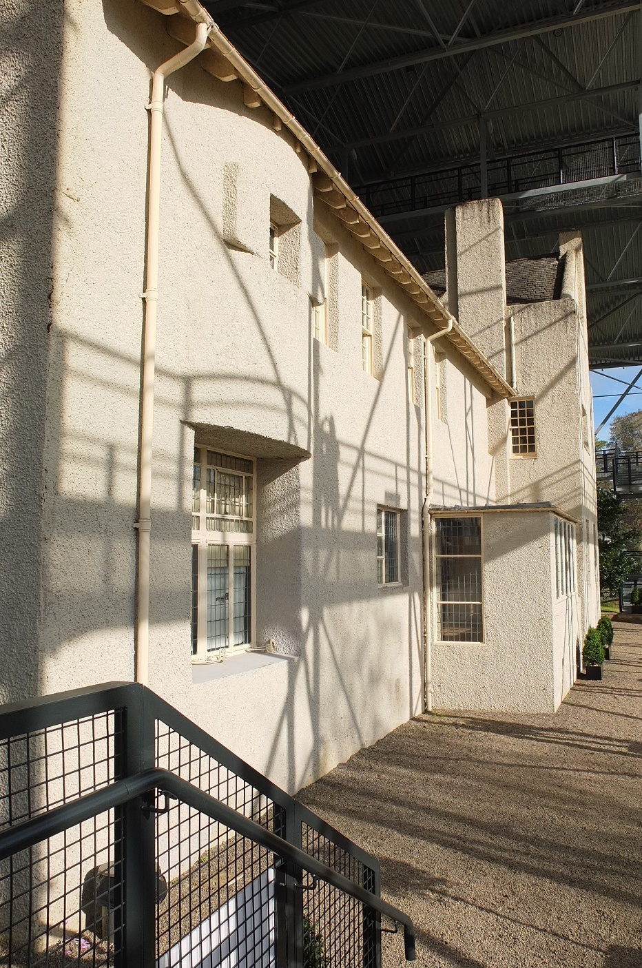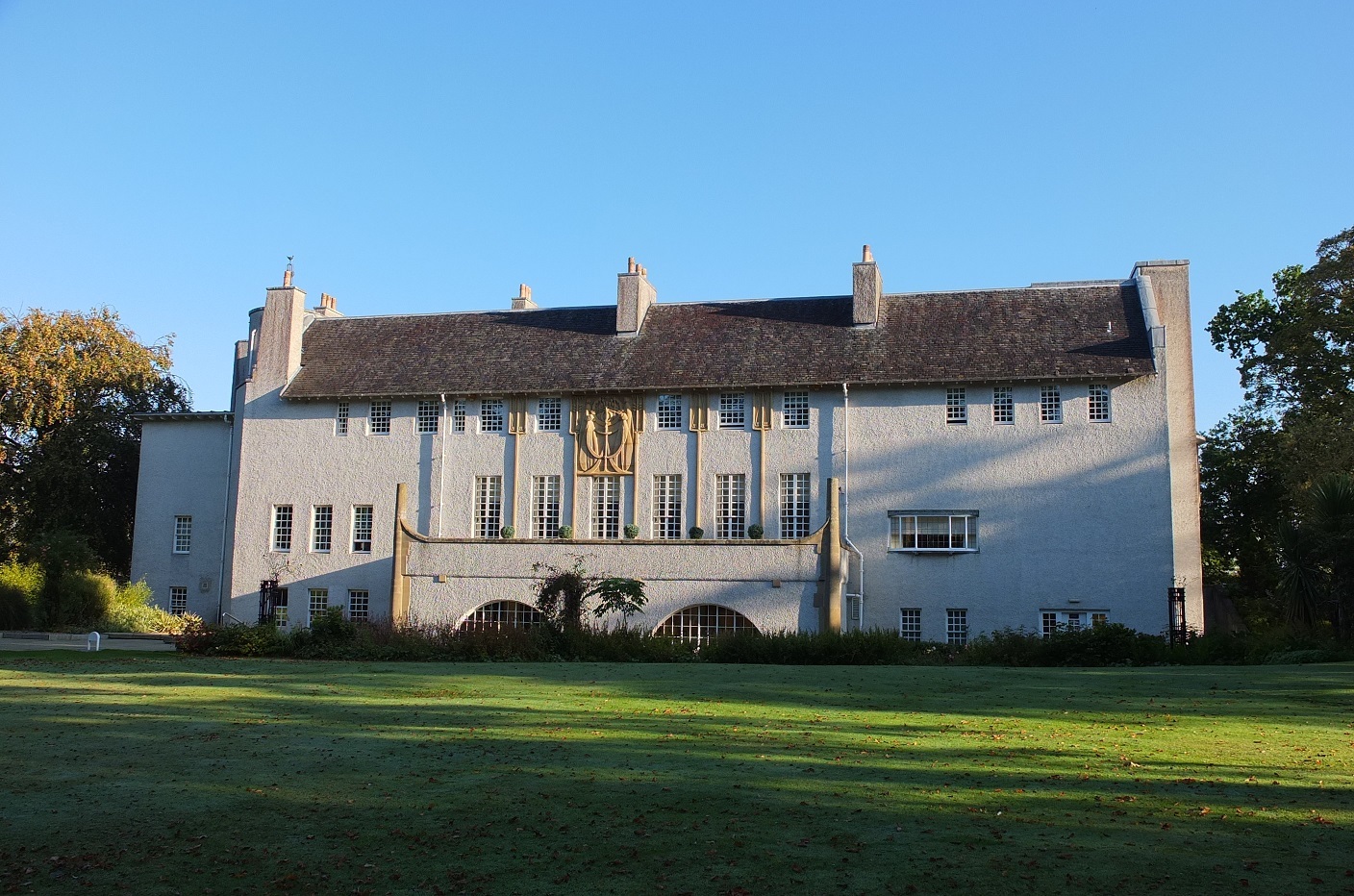 へレンズバラに到着し、地図を見ながら歩いたけれど、地図が間違っていてたどり着かず駅に引き返し、タクシーでヒルハウスへ。やっとの思いで到着したヒルハウスは、外部の大規模修繕中!上の写真は、金網越しに撮ったもの。