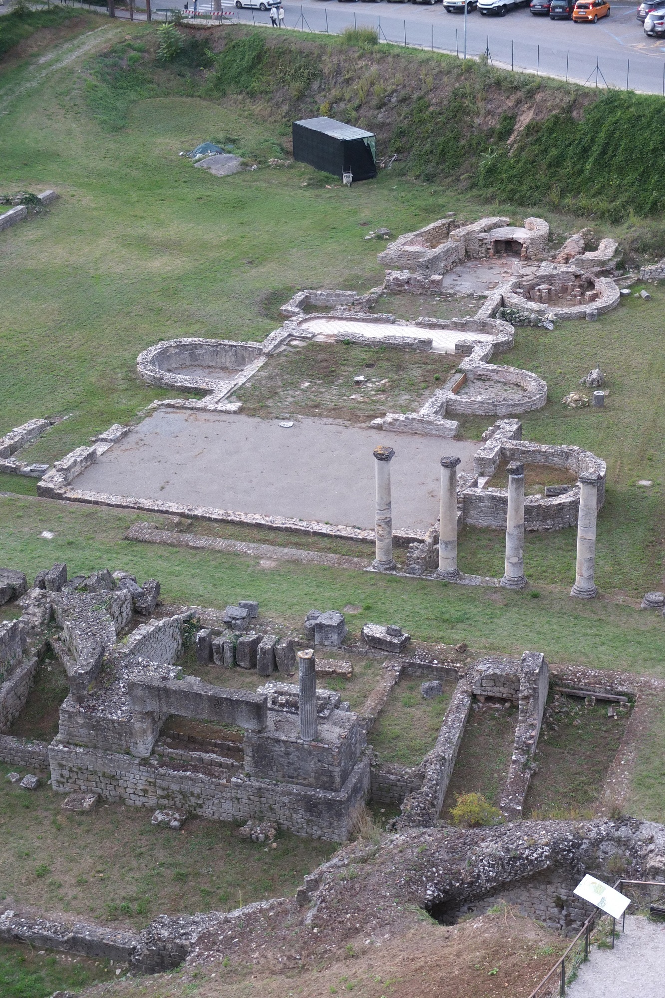 街は城壁で囲まれ、城壁の外には円形劇場テアトロロマーノがある。外周の道から見える。ここも見学ができるそうだが、やはり時間が無く上から眺めて来た。