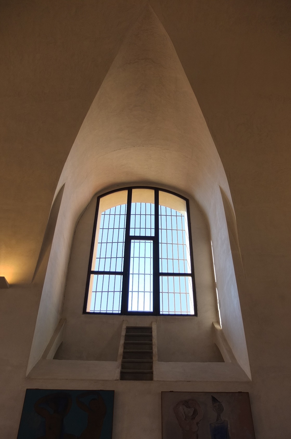 かつて、このアーチ窓にはどんなステンドグラスが入れられていたのだろうか・・と外のような内のような不思議な空間で過去に思いを走らせる…