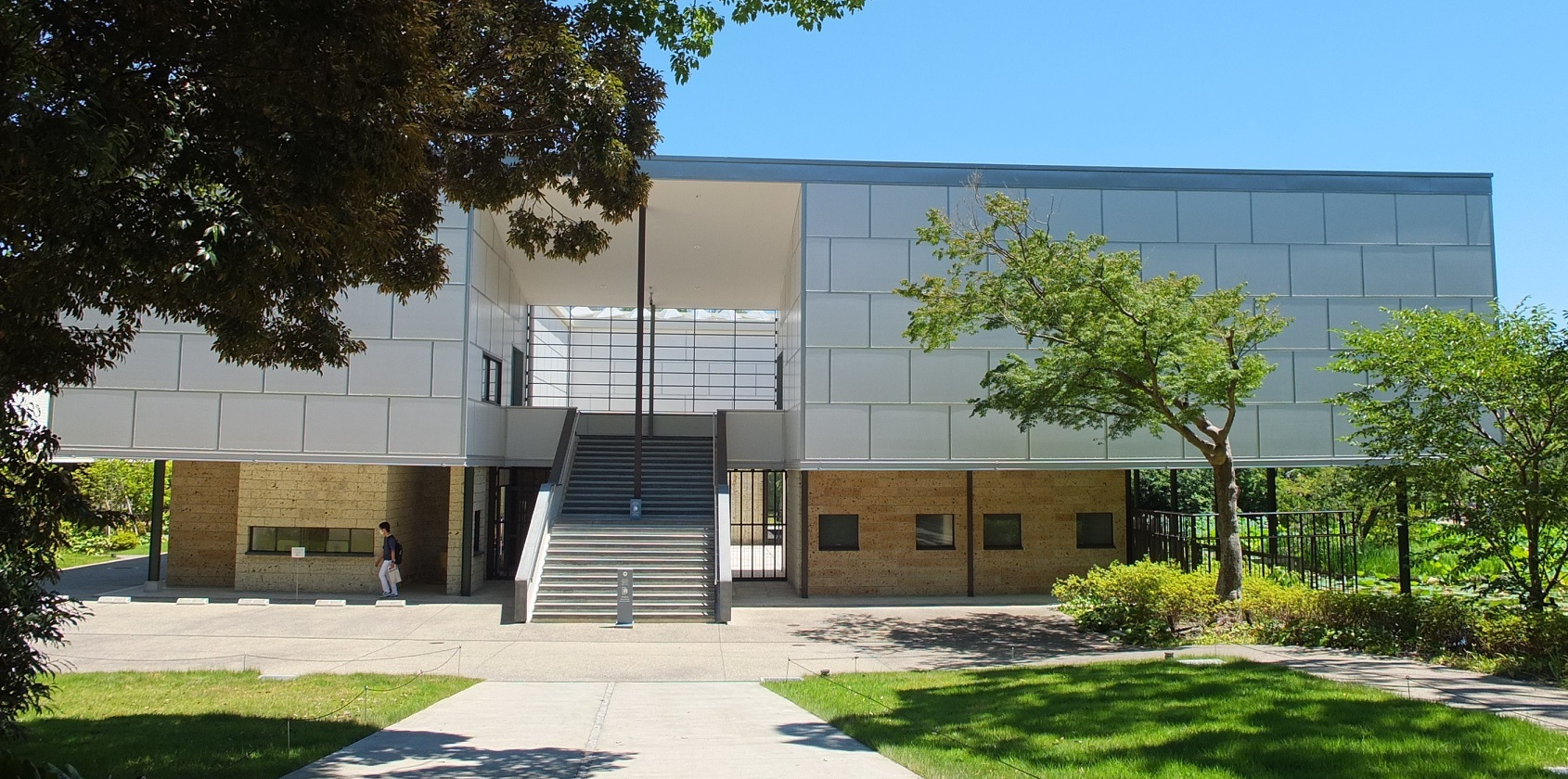 元神奈川県立近代美術館旧鎌倉館として1951年11月に建築家・坂倉準三の設計により建築され、開館したこの建物。借地であったため、2016年1月の契約期間終了に伴い閉館し、取り壊される危機に陥った・・・が、保存運動の末、土地の餅ny氏である鶴岡八幡宮が保存して活用することを決め、2019年6月に 「鎌倉文華館 鶴岡ミュージアム」として開館された。