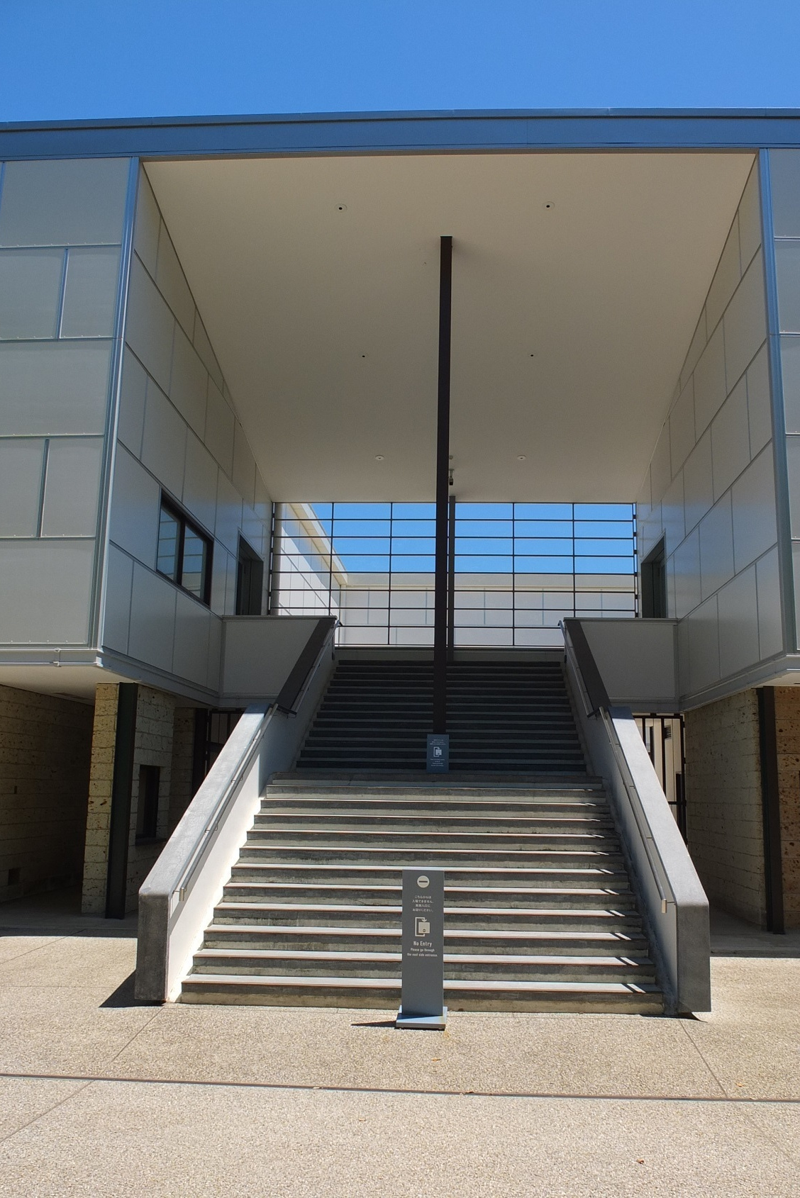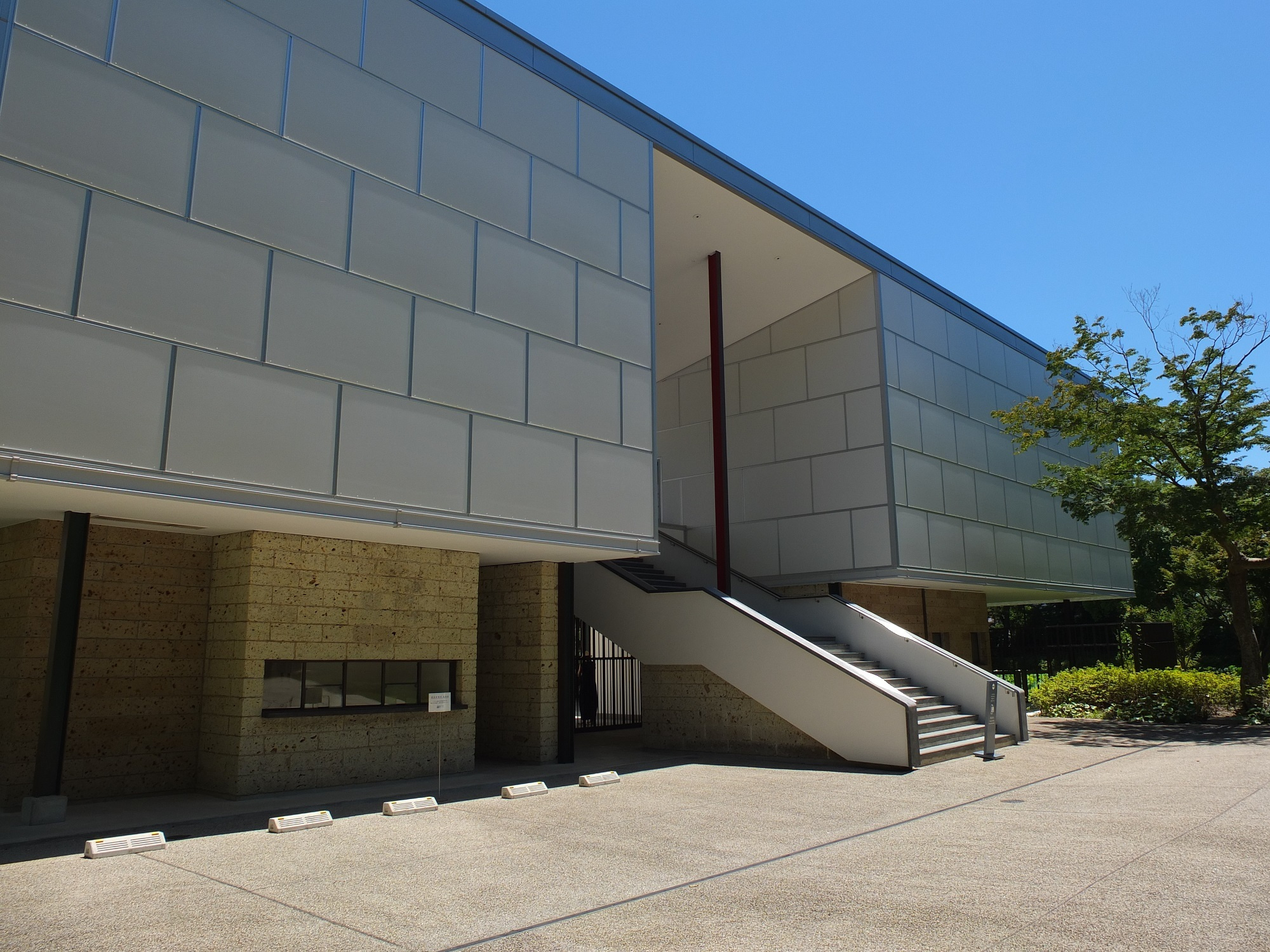 で、これが正面(現在の)。左の写真の階段に向かって左に旧チケット売り場があった。今も国道側からは入れるが、入館するには反対側に回らなければならない。