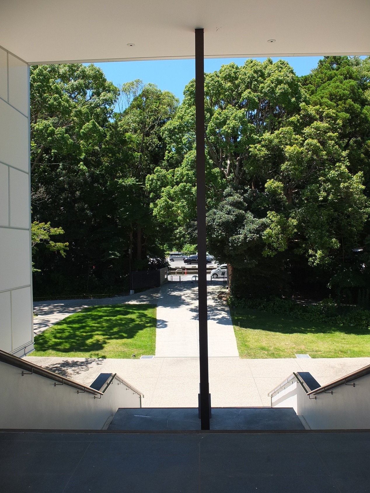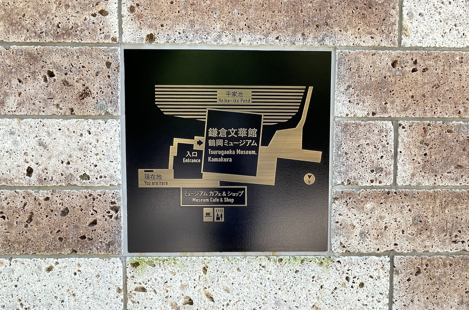 入館は、鶴ケ丘八幡宮側から。チケット売り場には、なんと巫女さん!なぜかありがたい気持ちになる(笑)。チケットを購入して入ると、すぐに目に入るのがこの中庭。思わずシャッターを切る。