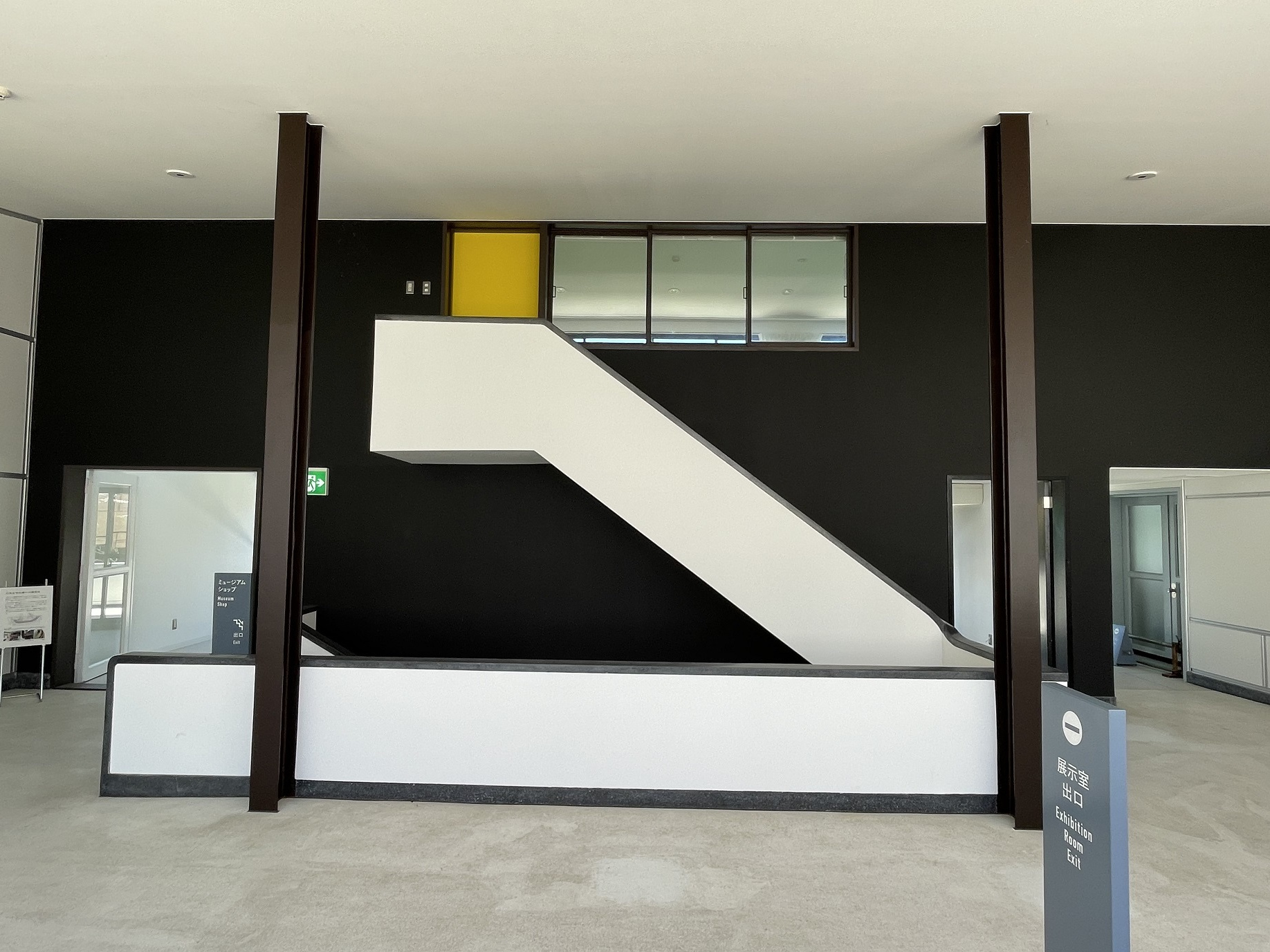 階段を上がると、展示室前の開かれた空間に出る。そしてこの壁面を目にするのだが、思わず写真を撮りたくなるようなデザイン!写真を撮りながら、ここだけこれにするなんでずるいなぁ~って、思ってしまった。