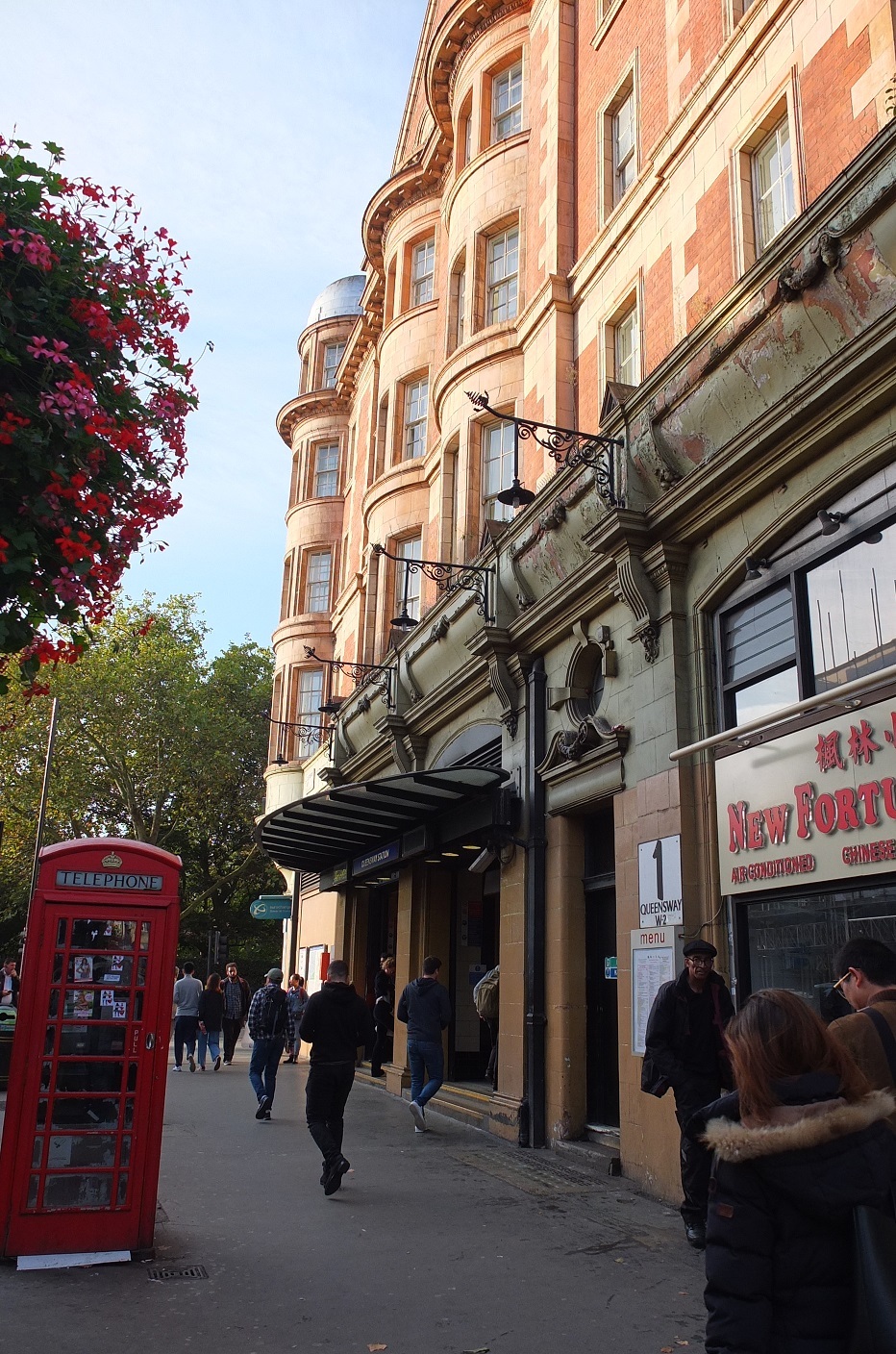 この建物の下に地下鉄のクイーンズウェイ駅があり、駅入り口にはアールデコ風の庇がかかっていた。