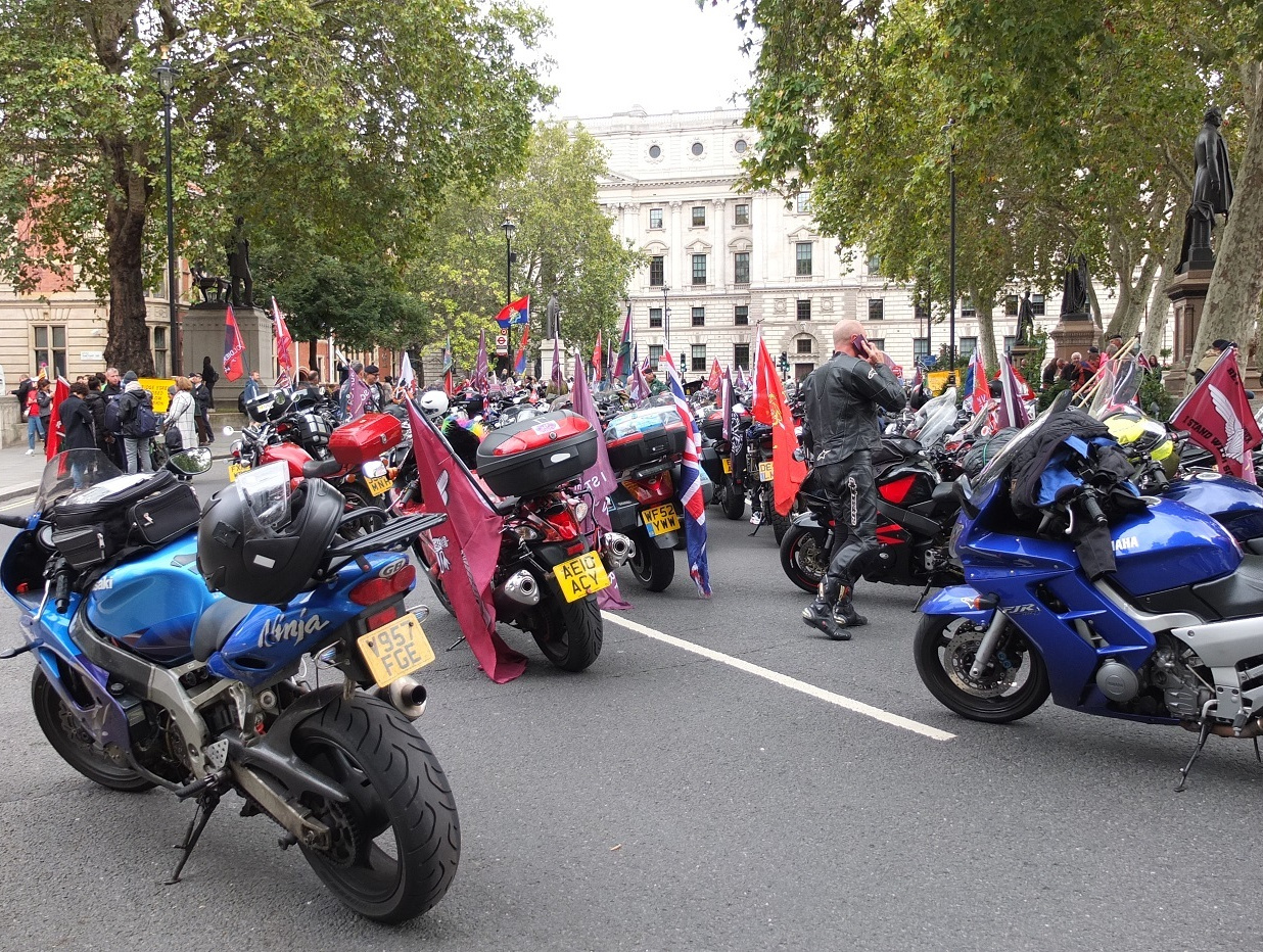 戦争に行った兵士たちを称えるデモが行われ、その一つでバイクによる行進?が行われたらしい。ウェストミンスター寺院に入場するための列に並んでいた時に、たくさんのバイクが列をなして走っていたのを見た。