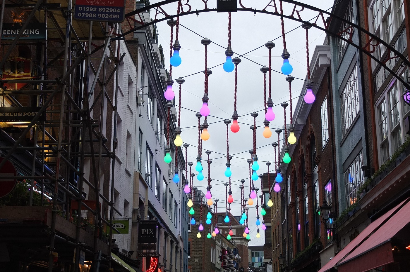 昼食後、ピカデリーサーカス区に向かって街を散策しながら歩いていくと、張り出した庇にさりげなく劇場名が!想像していたのとちょっと違う・・・。帝国劇場的なものを想像してたら、日生劇場位な感じ。