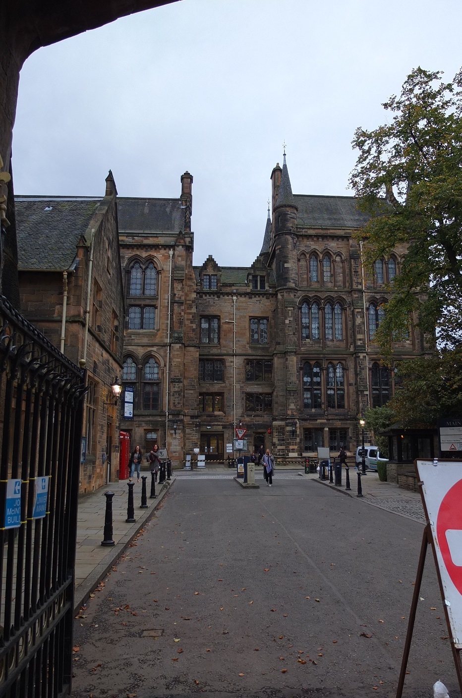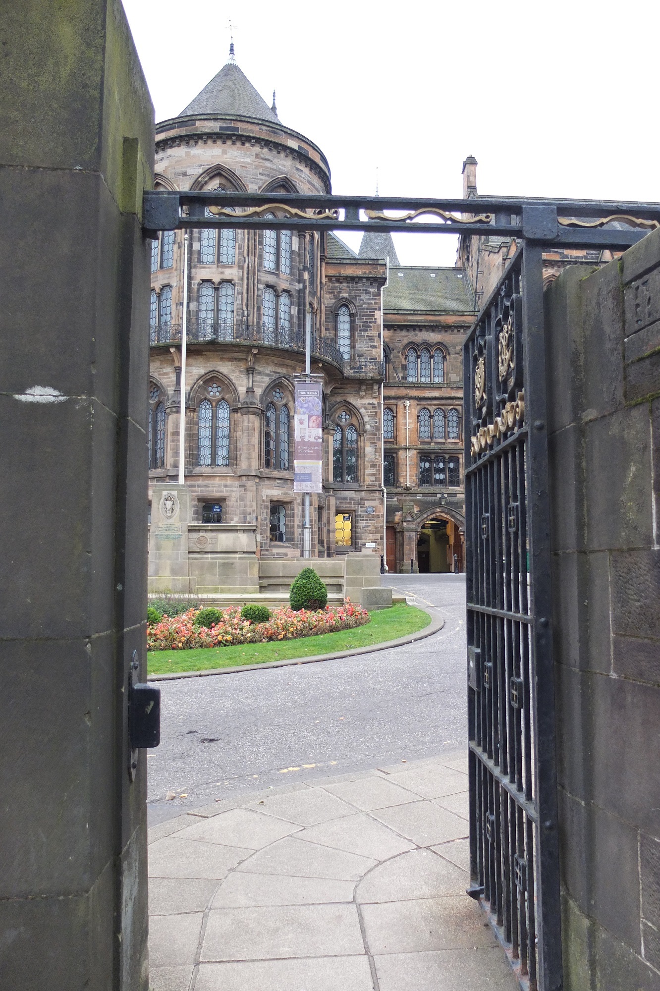 よく見ると塀(鉄柵)に文字が有る。調べてみたら、これらは、グラスゴーに関わりのある人たちの名前だった。「ADAM SMITH」・・・卒業生、道徳哲学者、教授 「REID」・・・アダム・スミスの後任教授 「CAMBELL」・・・卒業生、政治家。