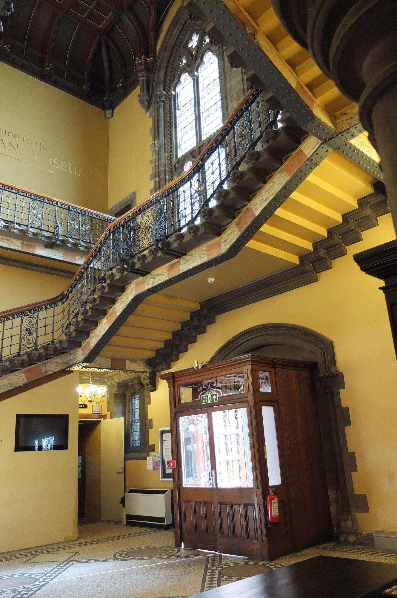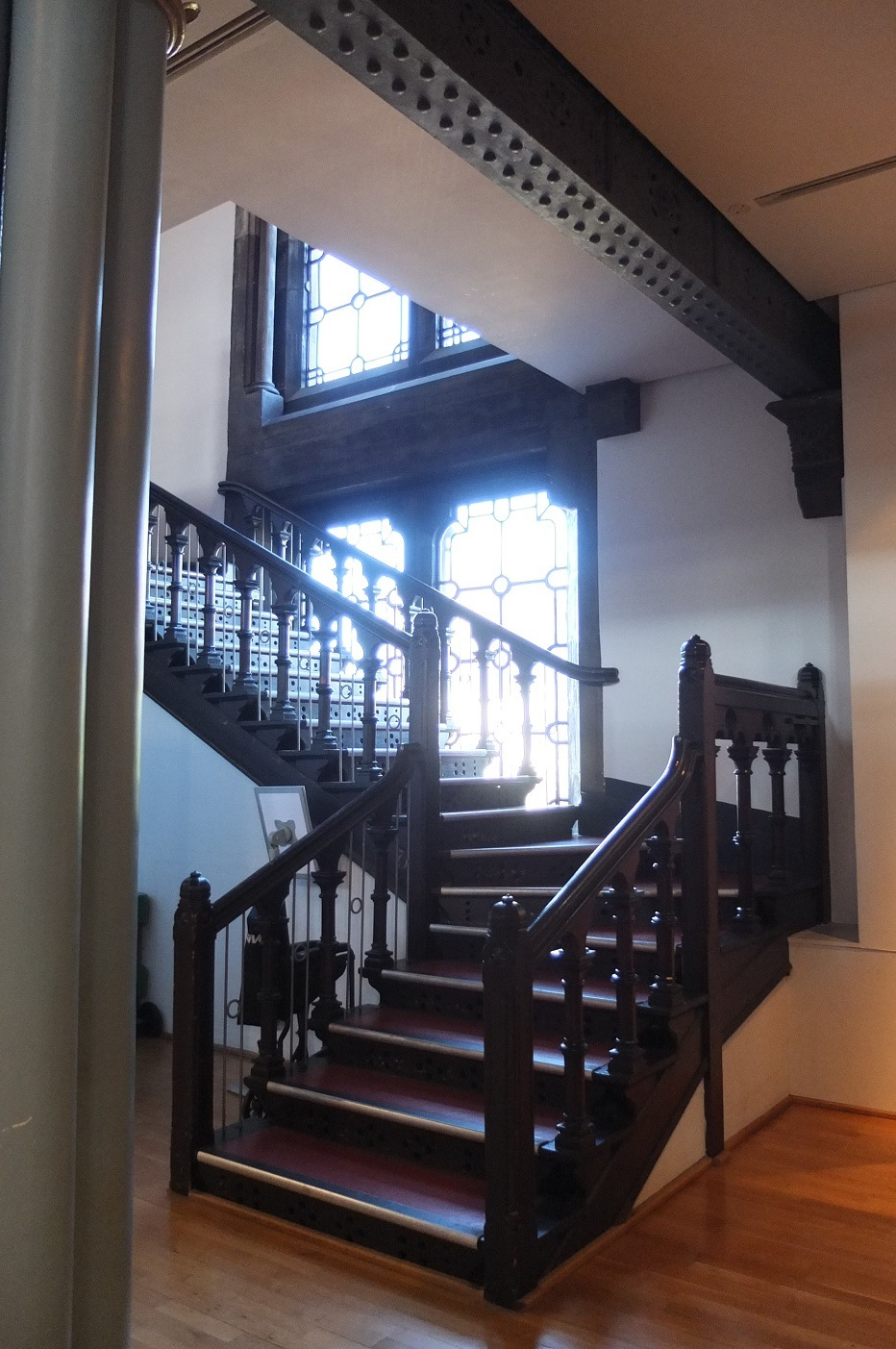 左の写真の真ん中にあるドアが開いていたので、入って見ると、ハンタリアン美術館の入り口だった。美しい階段!