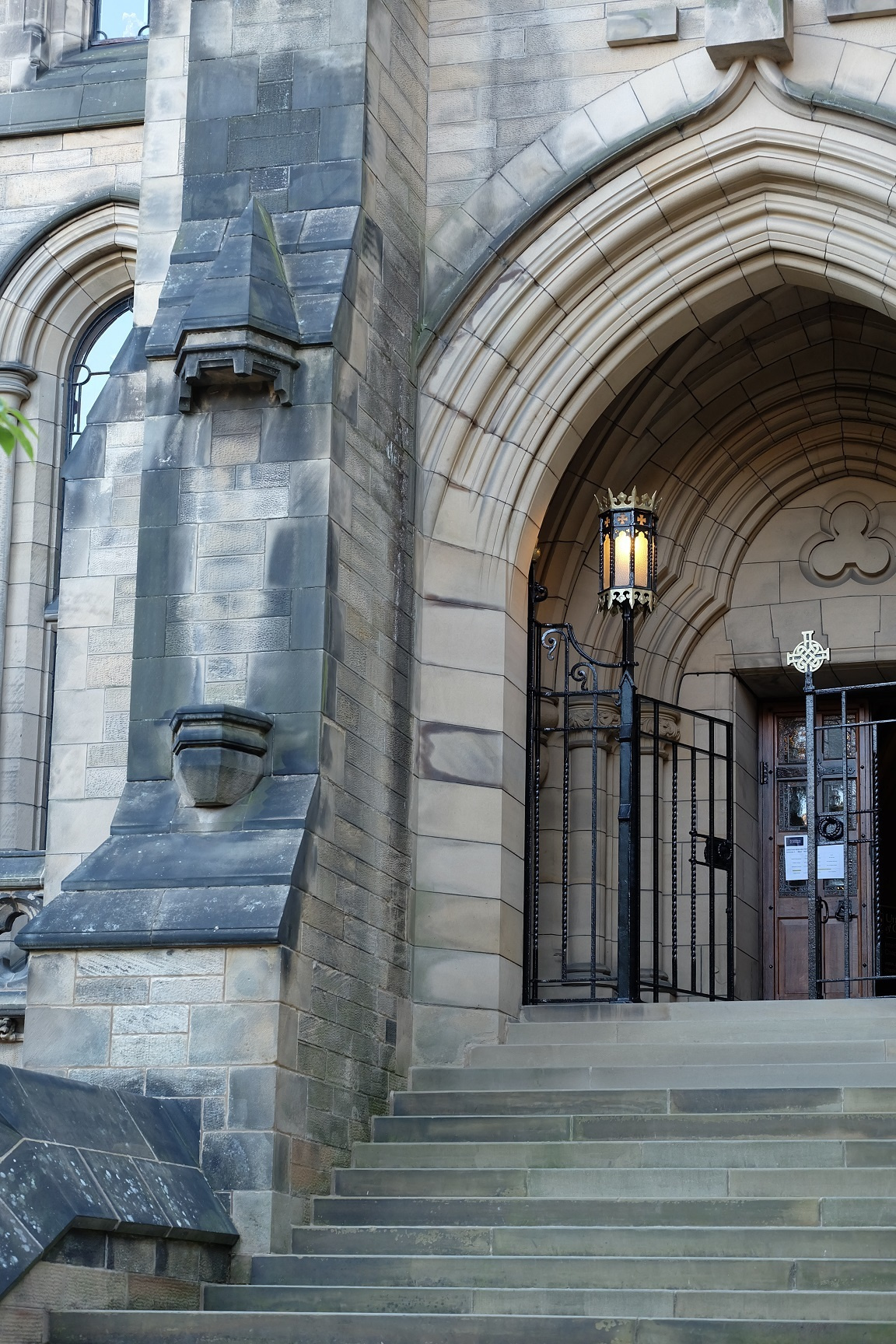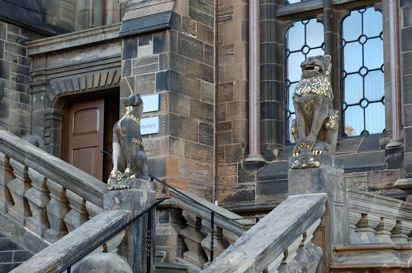 昨日見た正門と反対側から入る。建物はかなりの年代物。創立が1451年という、500年以上の歴史を有する英語圏最古の大学の一つだそうだ。高い塔があるゴシック様式この大学本館は、建築家ジョージ・ギルバート・スコットの設計により1870年の移転の時に建設されたそうだ。ん?そんなに古くない?