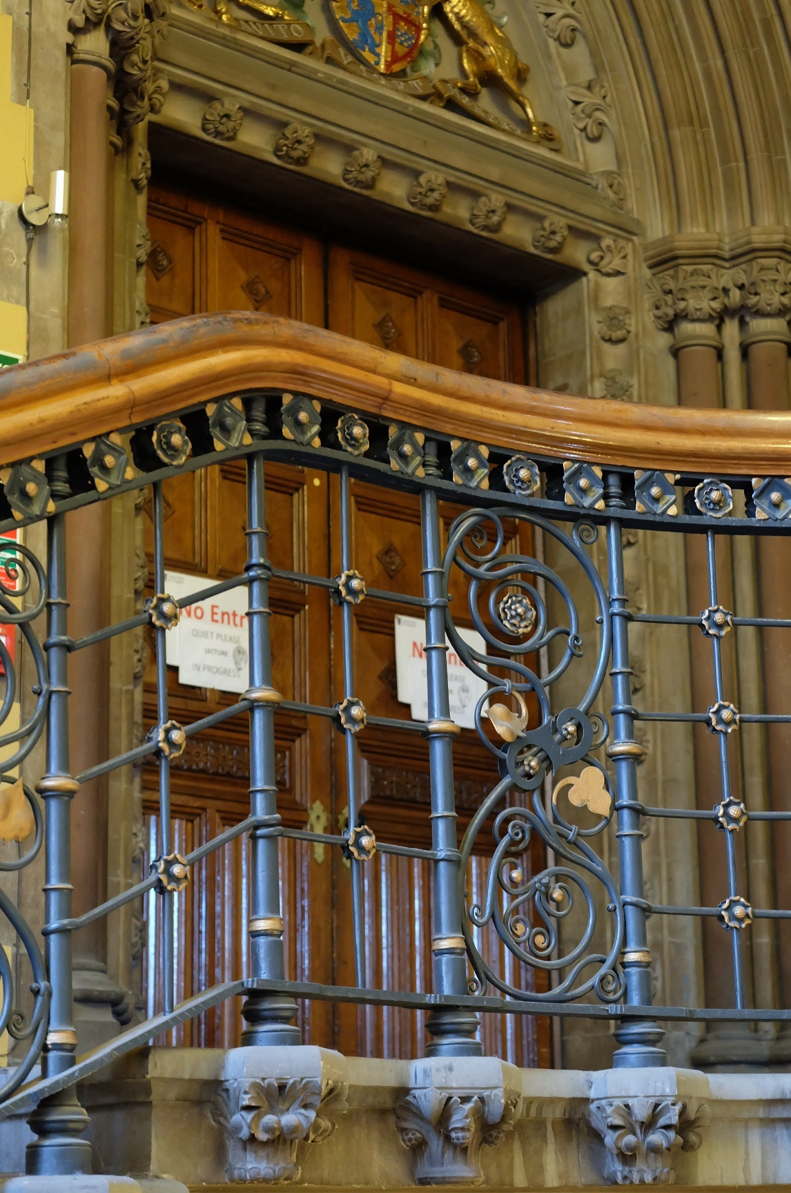 柱なんて、こんなかわいい装飾がされているのに。手摺だって、無機質じゃないのに・・・天井が構造むき出しのせい??いやいや、教会だってそういうのあるし・・