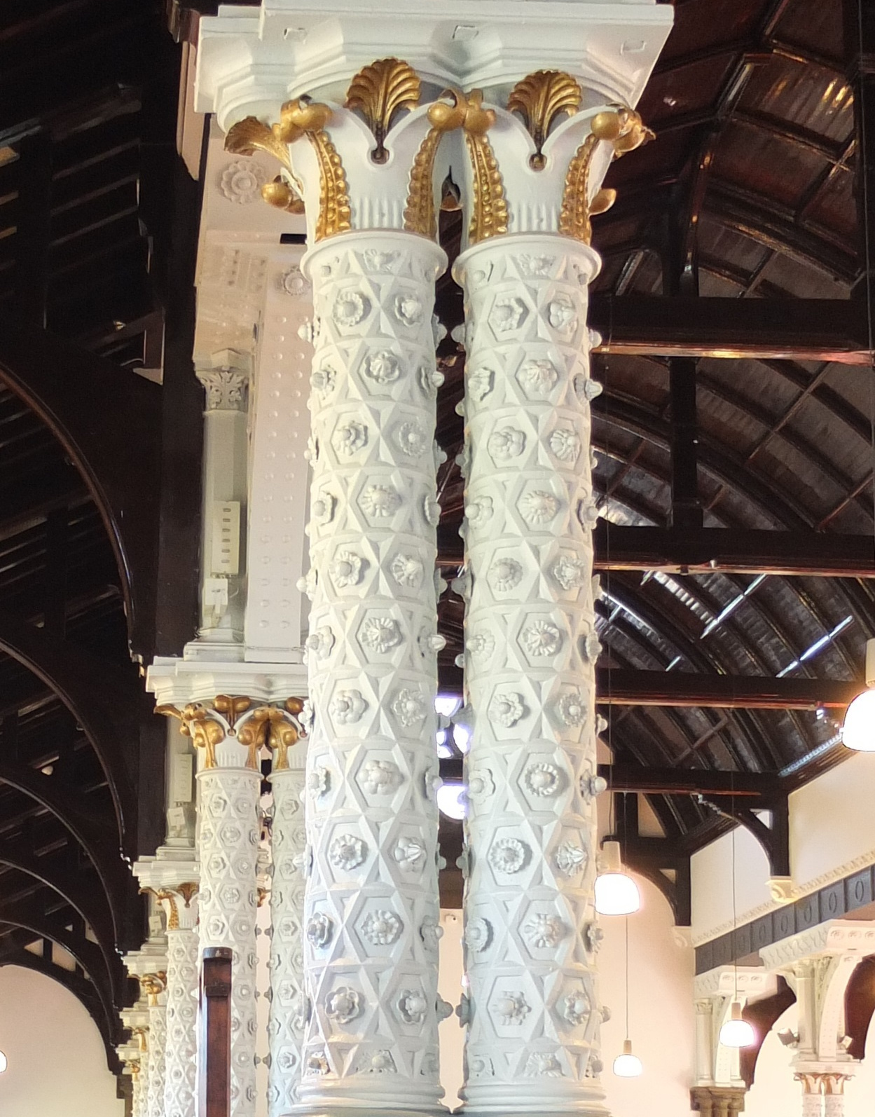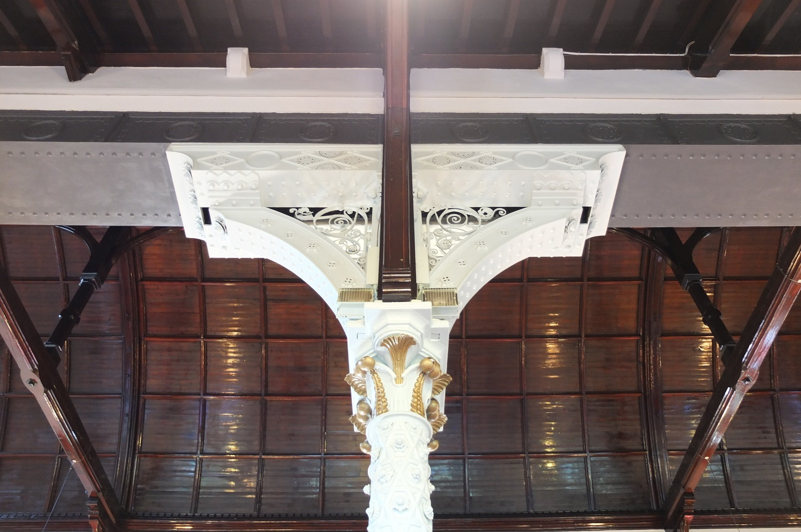 よく見ると、梁は鉄骨だ。柱もおそらく鉄骨で、装飾で覆っているんだろうな。梁も鉄骨とは思えないような装飾が!