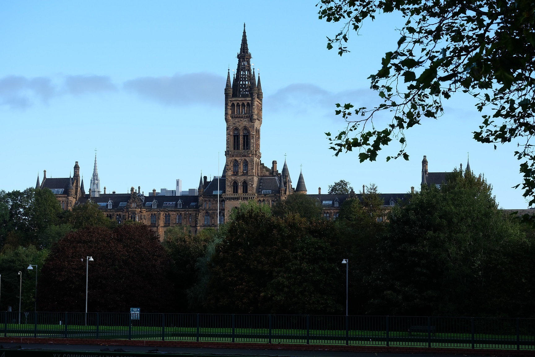 朝9時少し前にホテルを出発。出てすぐにグラスゴー大学のあの高い塔が見える。昨日も写真を撮ったのに、また撮ってしまう。昨日は夕暮れだったから、朝の写真も^^