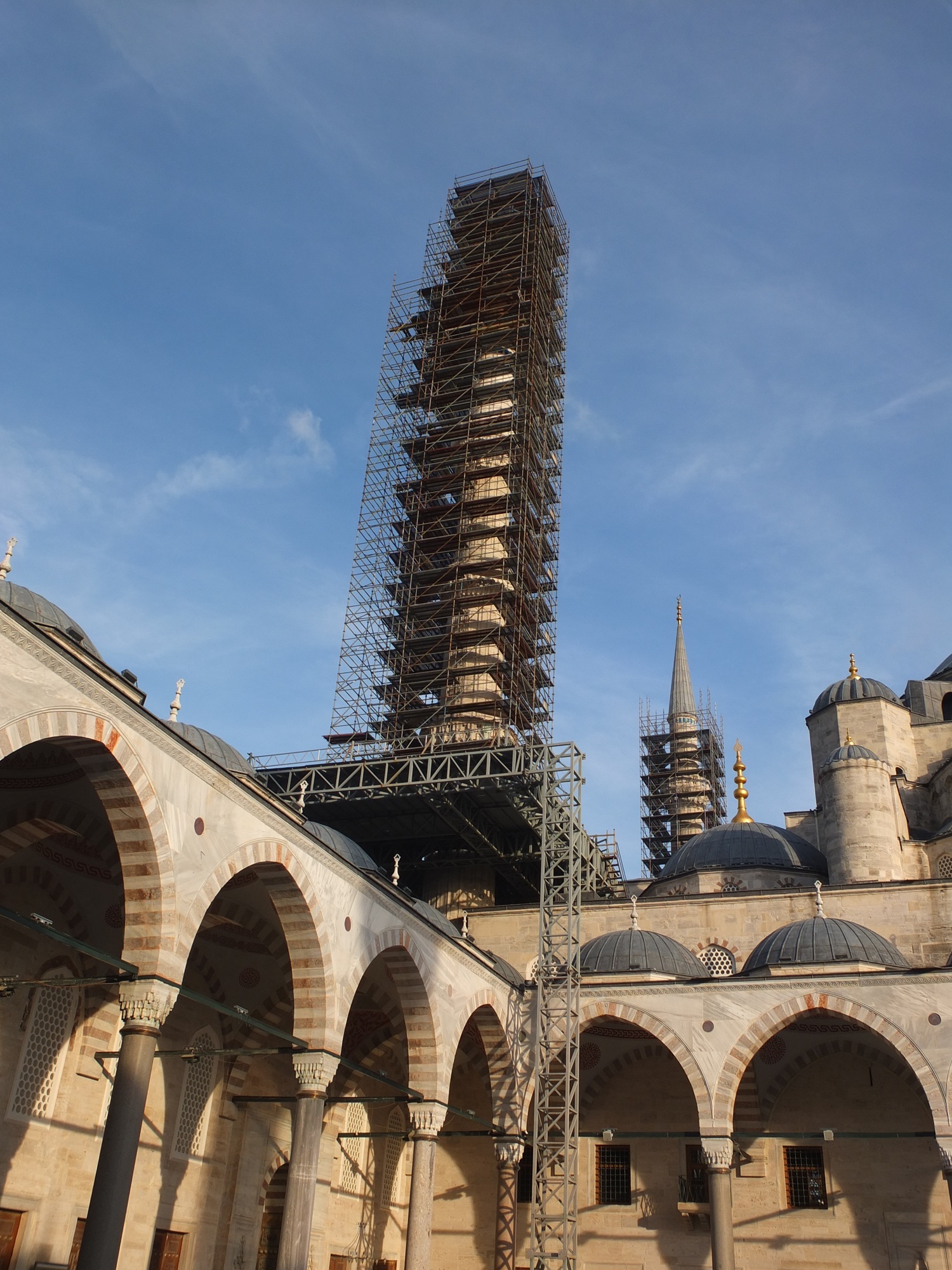 現在、ミナレットの数本は修復中で、全部がそびえたつ姿は見ることができない。例によって修復完了の日は未定らしい^^;