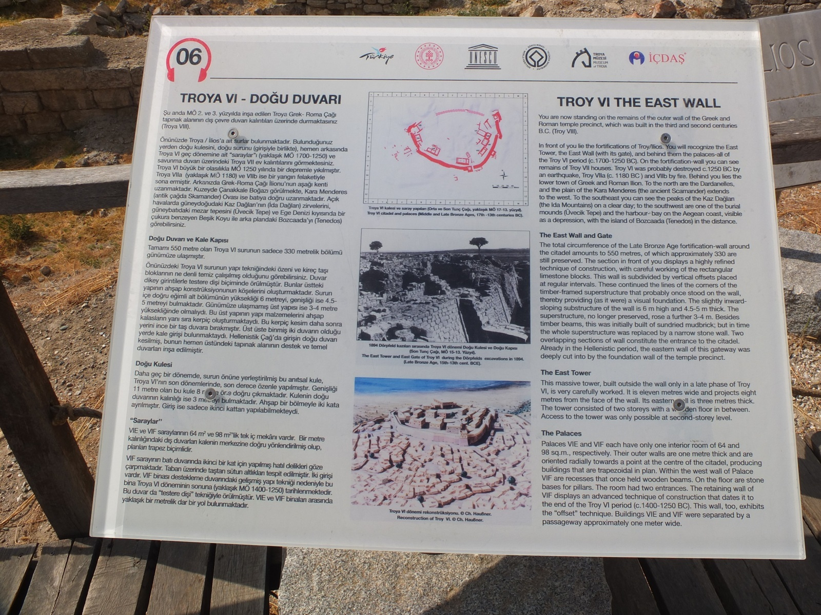 □トロイの遺跡は、トルコ西北部・チャナッカレ県の、ダーダネルス海峡から南へ約5kmほどのところに、エーゲ海の平原を見下ろすようになっているヒサルルクの丘にある。
